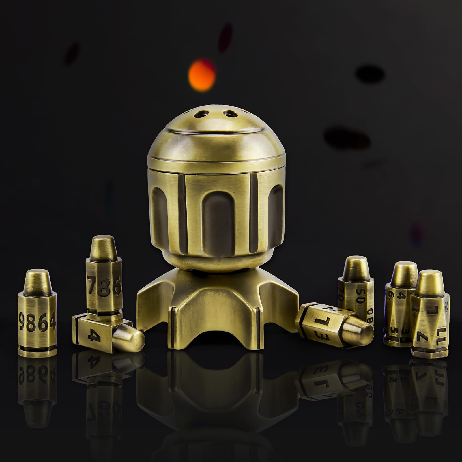 Wow, diese Würfel sind der absolute Hammer! Das ORUZA Metall-Würfelset im coolen Bullet-Design bringt euer Pen&Paper-Spiel auf das nächste Level. 7 Würfel aus massiver Zinklegierung - inklusive D4, D6, D8, D10, D12, D20 und dem Prozentwürfel. Das besondere Highlight: Der drehbare Revolver-Zylinder als Aufbewahrungsbox! Einfach die Würfel wie Munition einlegen und den Zylinder schließen. Perfekt für D&D, Warhammer 40K, Shadowrun oder andere Rollenspiele. Die Würfel sind super ausbalanciert, gut lesbar und haben ein angenehmes Gewicht in der Hand. Das polierte Finish verhindert das Abblättern der Farbe. Ideal für alle, die was Besonderes suchen - ob für den eigenen Charakter oder als mega Geschenk für andere Rollenspiel-Fans. Damit wirst du garantiert zum Star an jedem Spieltisch! Die Bullet-Form sieht nicht nur cool aus, sondern eignet sich auch perfekt als Munitionszähler während der Kämpfe. Einfach genial!