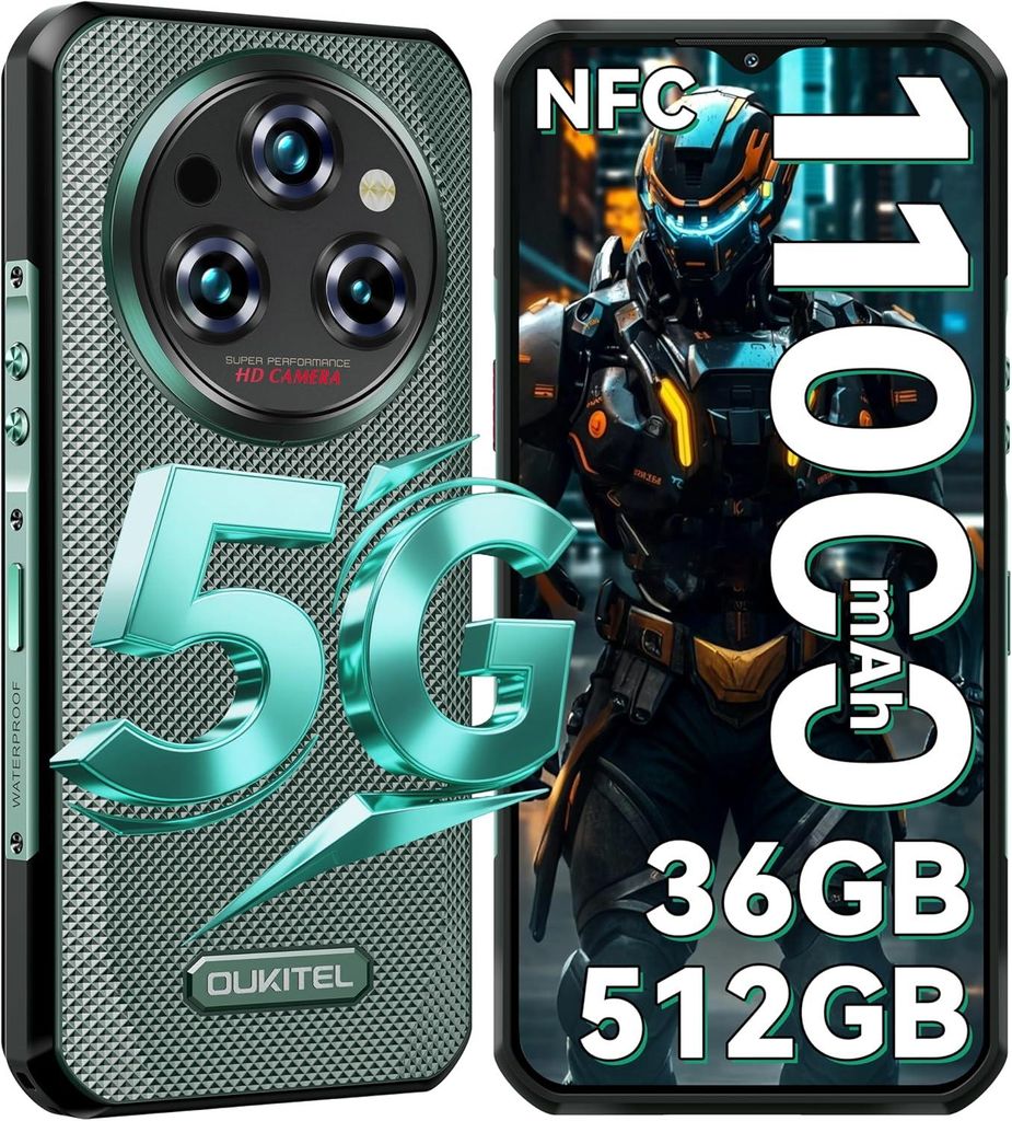 Krass, dieses Outdoor-Handy ist ein absoluter Brocken! Das OUKITEL WP35 hält einfach alles aus: Wasser, Staub, Stürze - mit IP68/IP69K und MIL-STD-810H Zertifizierung ist es perfekt für Baustelle, Outdoor oder Abenteuer.\\n\\nDer 11000mAh Akku ist der Hammer! Damit kommst du ewig ohne Laden aus - bis zu 50 Tage Standby oder 75 Stunden Sprechzeit. Und trotzdem ist das Ding nur 14,9mm dick. Kann sogar andere Geräte aufladen!\\n\\n5G mit Dimensity 6100+ Chip, 24GB RAM (erweiterbar) und 256GB Speicher - da läuft alles butterweich. Das 6,6 Zoll FHD+ Display ist super klar und die 64MP Kamera macht mega Fotos, sogar Nachtsicht mit 8MP IR-Kamera!\\n\\nAndroid 14, Gorilla Glass, NFC, Fingerabdruck, Gesichtserkennung - alles dabei. Egal ob du auf der Baustelle arbeitest, wandern gehst oder einfach ein robustes Alltags-Handy willst: Damit bist du perfekt ausgestattet!