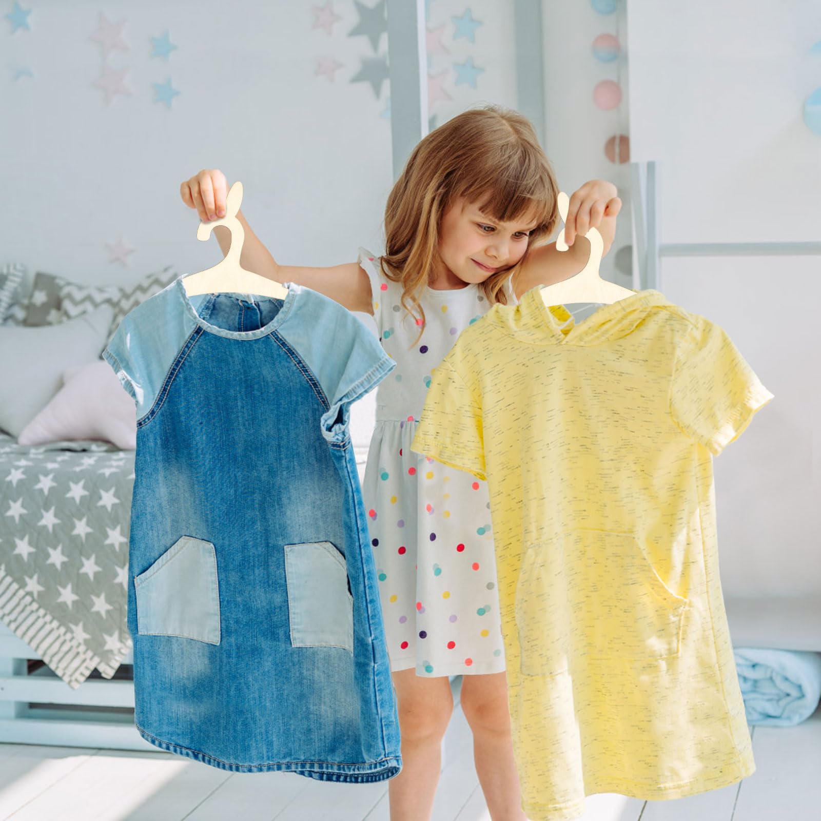 Diese OUNONA Kinderkleiderbügel aus Massivholz sind echt praktisch für die Kleinen! Im 5er-Set hast du genug für die ganze Kinderkleidung - ob Hosen, Röcke oder Shirts. Mit den Maßen 12x10x1,4 cm sind sie perfekt auf Kinderkleidung abgestimmt und nehmen im Schrank kaum Platz weg. Der integrierte Hosenclip hält Hosen und Röcke sicher fest, sodass nichts verrutscht oder runterfällt. Aus hellem, glatt geschliffenem Holz ohne scharfe Kanten - super schonend für die empfindliche Kinderhaut. Die stabilen Bügel aus Edelstahl tragen auch etwas schwerere Kleidungsstücke problemlos. Perfekt fürs Kinderzimmer, Kindergarten oder wenn du einfach Ordnung in den Kleiderschrank bringen willst. Das natürliche Holzdesign sieht nicht nur schön aus, sondern ist auch langlebig und umweltfreundlich. Kein Plastik, kein Schnickschnack - einfach gute, praktische Kleiderbügel die ihren Job machen! Deine Kinder lernen so spielerisch, ihre Kleidung ordentlich aufzuhängen. Einfach ausprobieren - du wirst sehen, wie viel ordentlicher der Kleiderschrank plötzlich aussieht!
