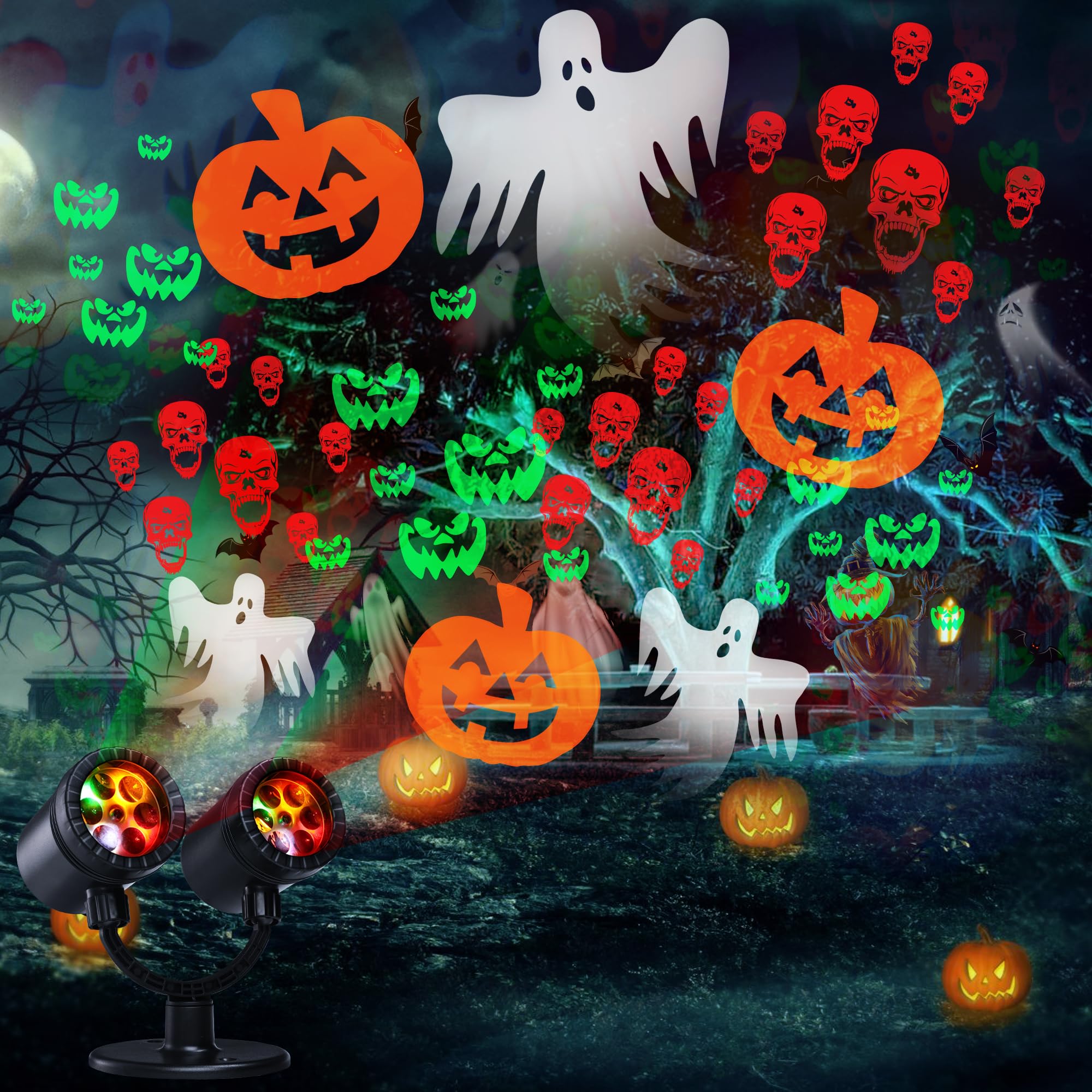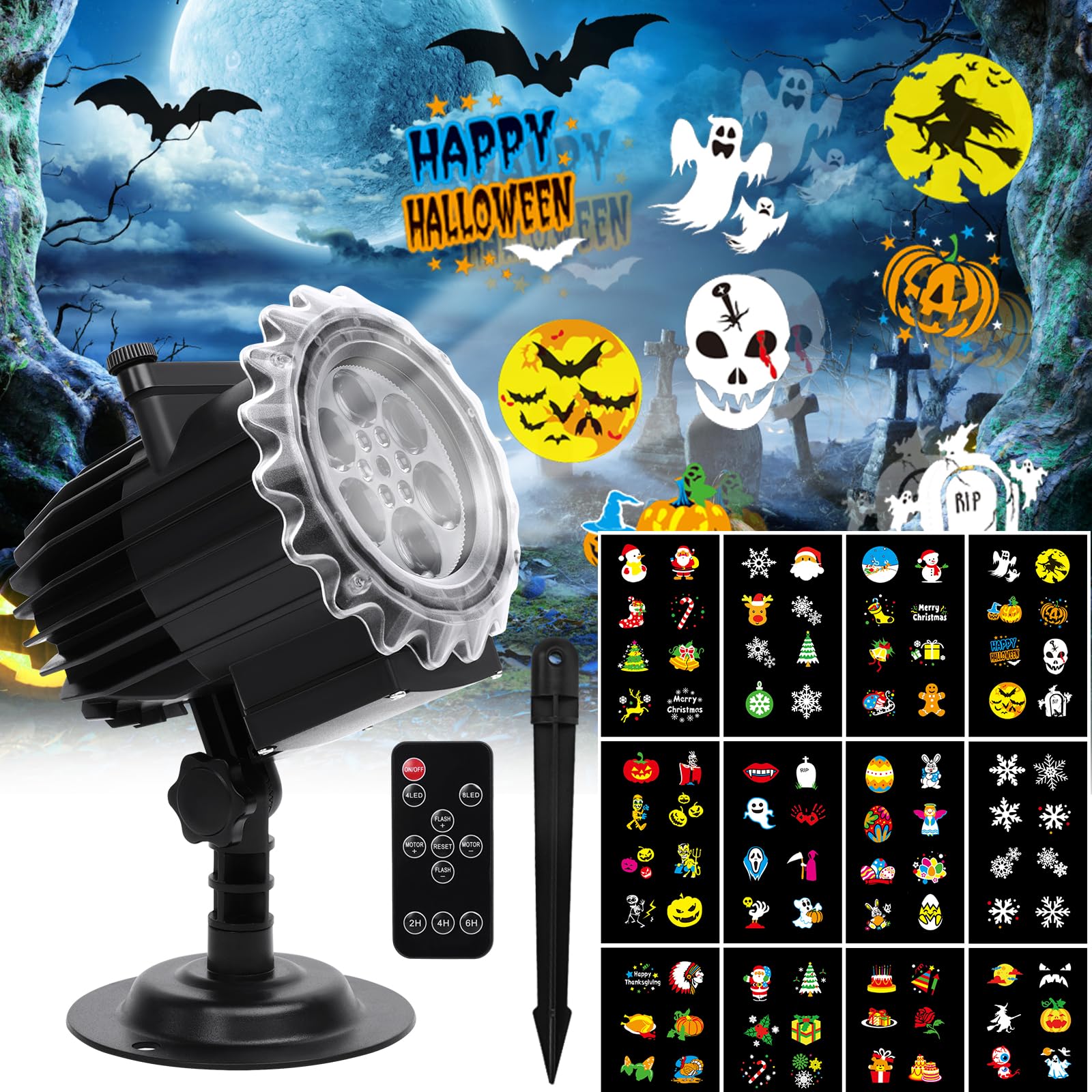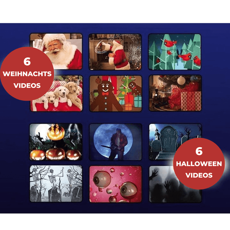 Verwandle dein Zuhause in eine Gruselburg! Dieser coole Projektor mit zwei Linsen bringt bis zu 64 verschiedene Motive an deine Hauswand - von gruseligen Gespenstern bis zu lustigen Kürbissen. Die vier wechselnden Aquarellfarben sorgen für eine richtig stimmungsvolle Atmosphäre.
