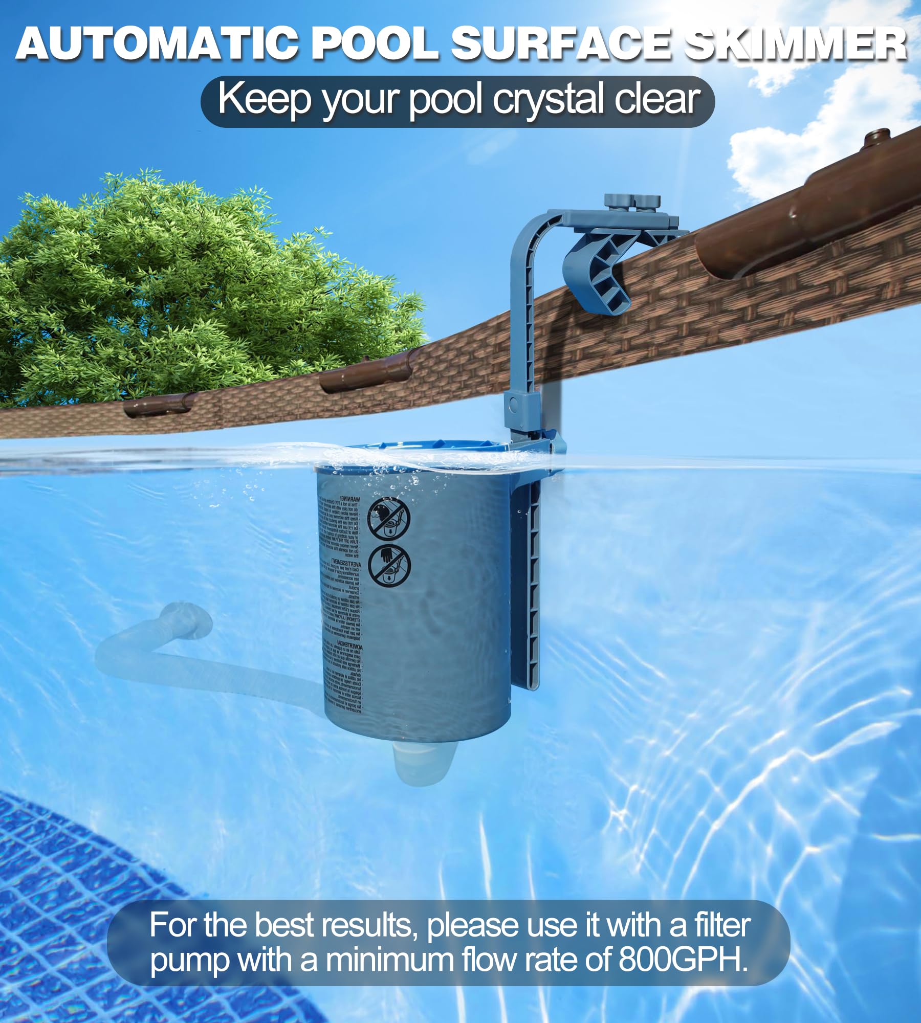 Das clevere Zirkulationsdesign sorgt dafür, dass Blätter, Pollen und andere Partikel schnell entfernt werden. Der abnehmbare Skimmerkorb mit großer Kapazität verhindert Verstopfungen und ist supereinfach zu reinigen. Einfach rausnehmen, ausleeren, zurück - fertig!