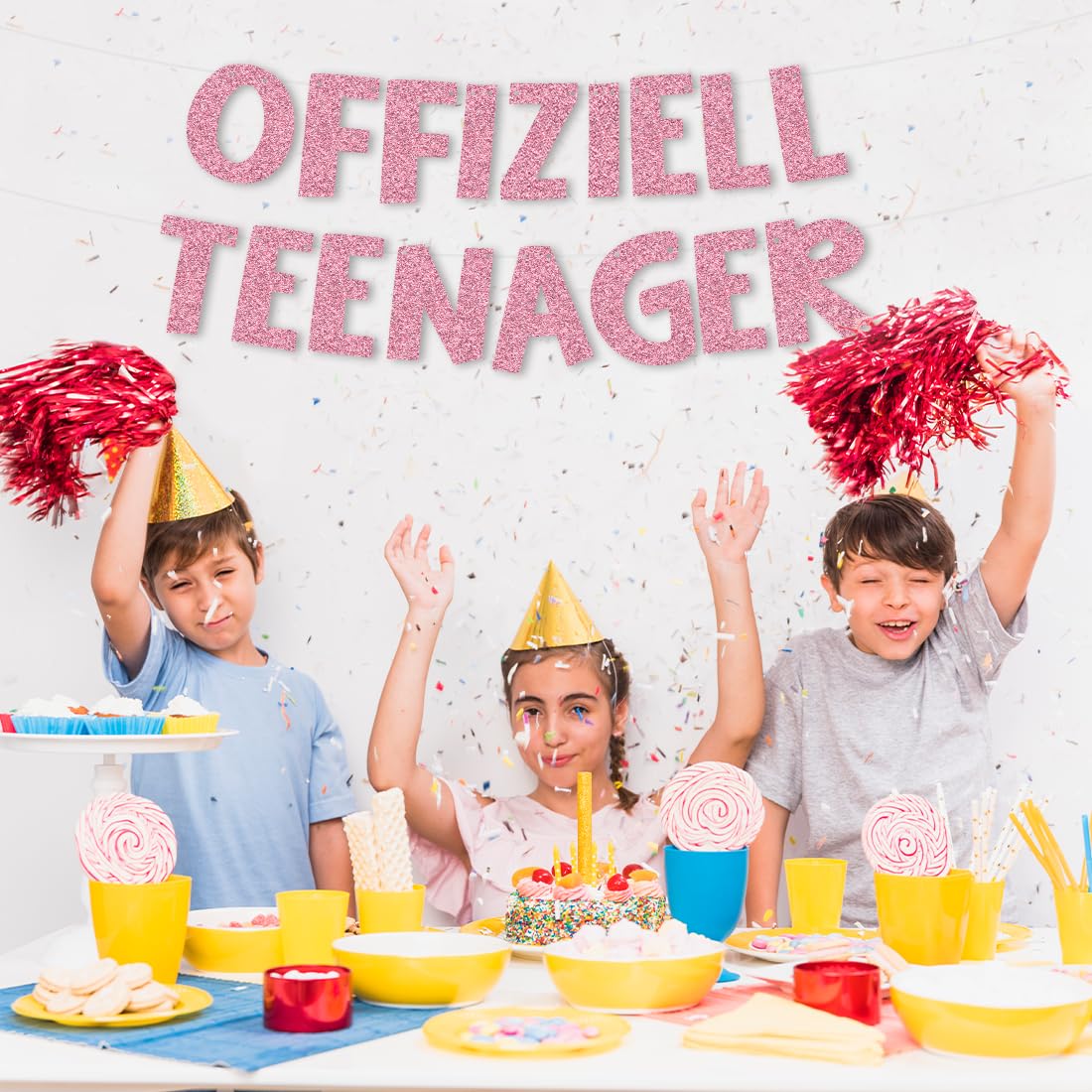 Ab jetzt ist es offiziell: Teenager! Dieses coole Banner von Ovanda macht jede 13. Geburtstags-Party zum Highlight. Mit dem blauen Glitzer-Design und der Aufschrift \\\Offiziell Teenager\\\ kommt richtig Stimmung auf.\\n\\nDas Banner ist aus hochwertigem Karton gefertigt - robust und langlebig, sodass du es auch bei mehreren Partys verwenden kannst. Die Installation ist super einfach: Einfach aufhängen und den Abstand entlang des Seils anpassen. Ob an der Wand, über dem Buffet-Tisch oder als Foto-Hintergrund - es sieht überall gut aus.\\n\\nPerfekt für Jungs, die ihren 13. Geburtstag feiern und diesen besonderen Meilenstein gebührend begehen wollen. Zusammen mit Luftballons, Konfetti und anderen Deko-Elementen kreierst du eine unvergessliche Party-Atmosphäre.\\n\\nDein Teenager wird sich riesig freuen über diese persönliche und lustige Dekoration. Und die Fotos mit dem Banner werden später sicher tolle Erinnerungen wecken. Auf in die Teenager-Jahre!