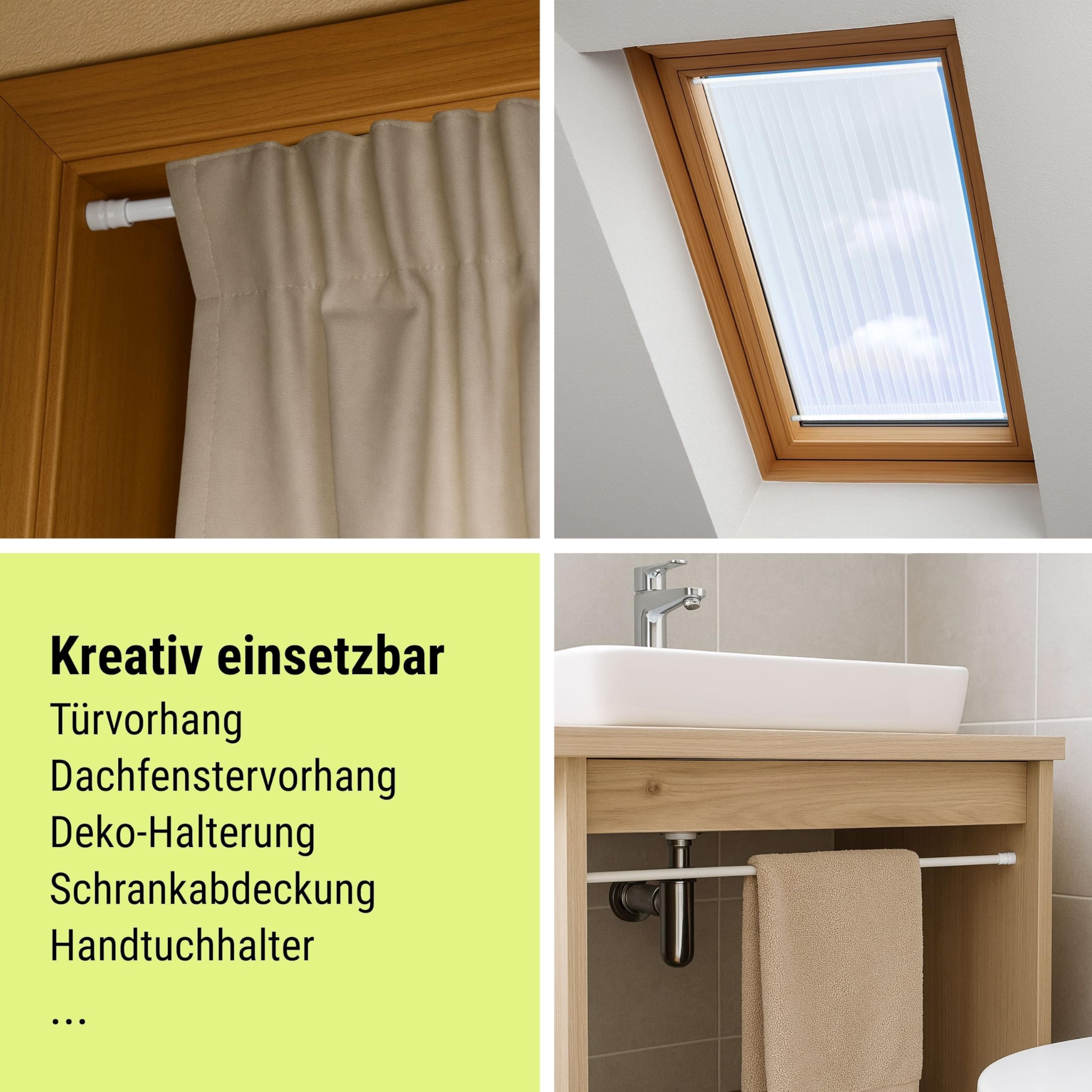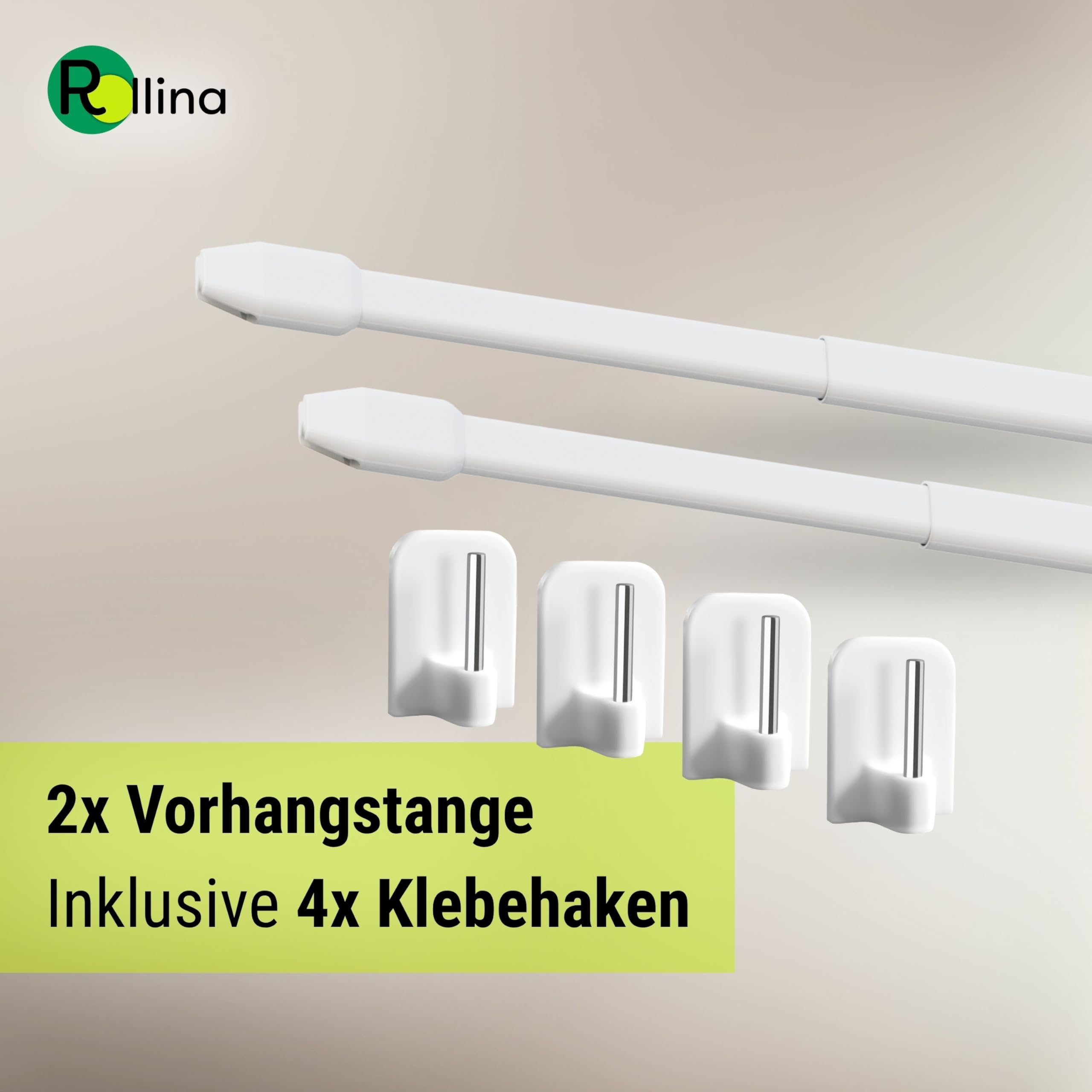 Kein Bohren, kein Stress! Diese Rollina Gardinenstangen sind die perfekte Lösung für Mieter und alle, die ihre Wände schonen wollen. Einfach die 4 mitgelieferten Klebehaken auf saubere, fettfreie Oberflächen drücken - und schon hält die Stange bombenfest. Das 2er Set ist ausziehbar von 40-70cm und passt damit an die meisten Fenster. Aus stabilem Metall und Made in Germany, also richtig gute Qualität. Perfekt für leichte Scheibengardinen in Küche, Bad oder Wohnzimmer. Die Montage dauert nur wenige Minuten und du brauchst kein Werkzeug. Wenn du willst, kannst du die Stangen auch mit optionalen Klemmträgern befestigen. So einfach war Gardinen aufhängen noch nie - probier's aus!