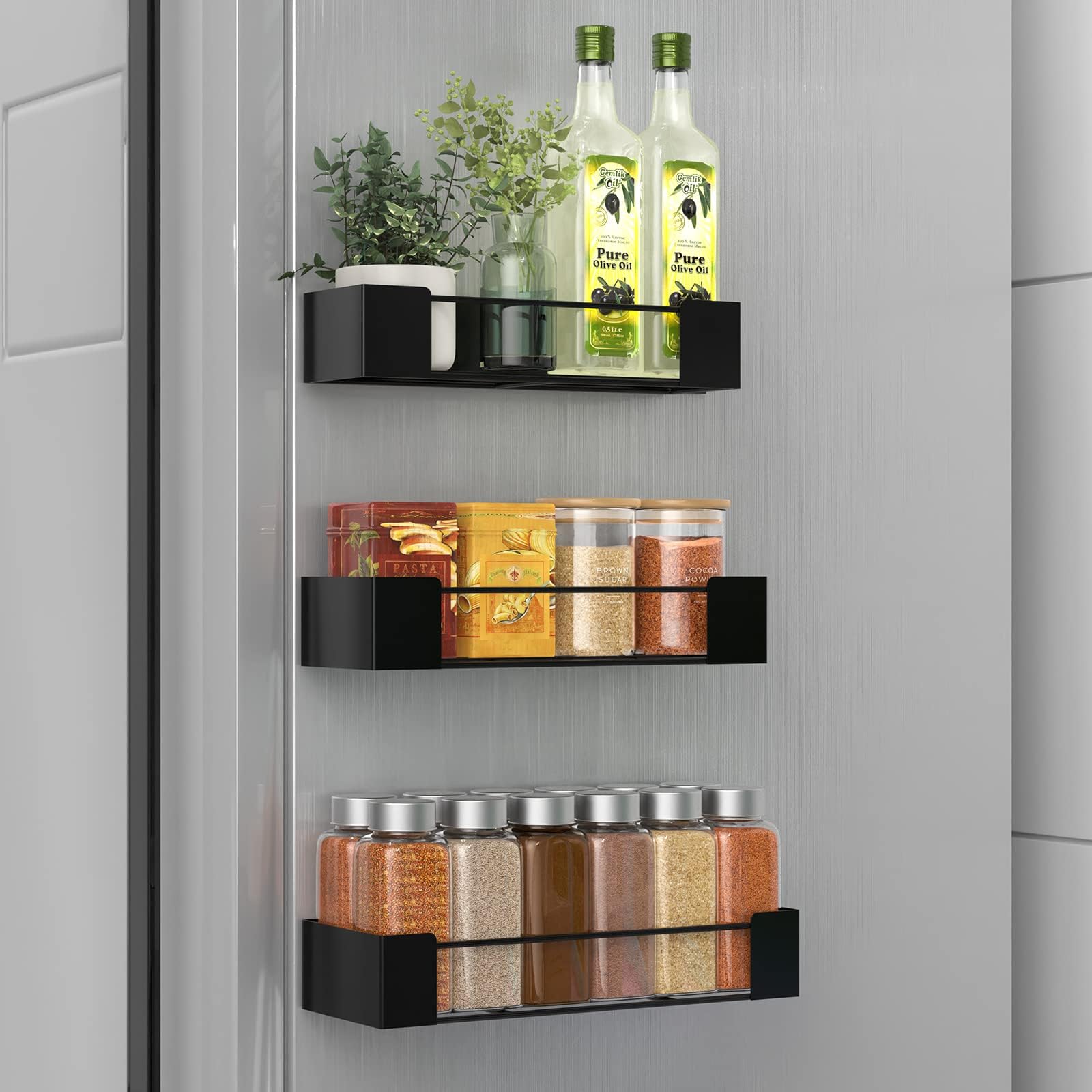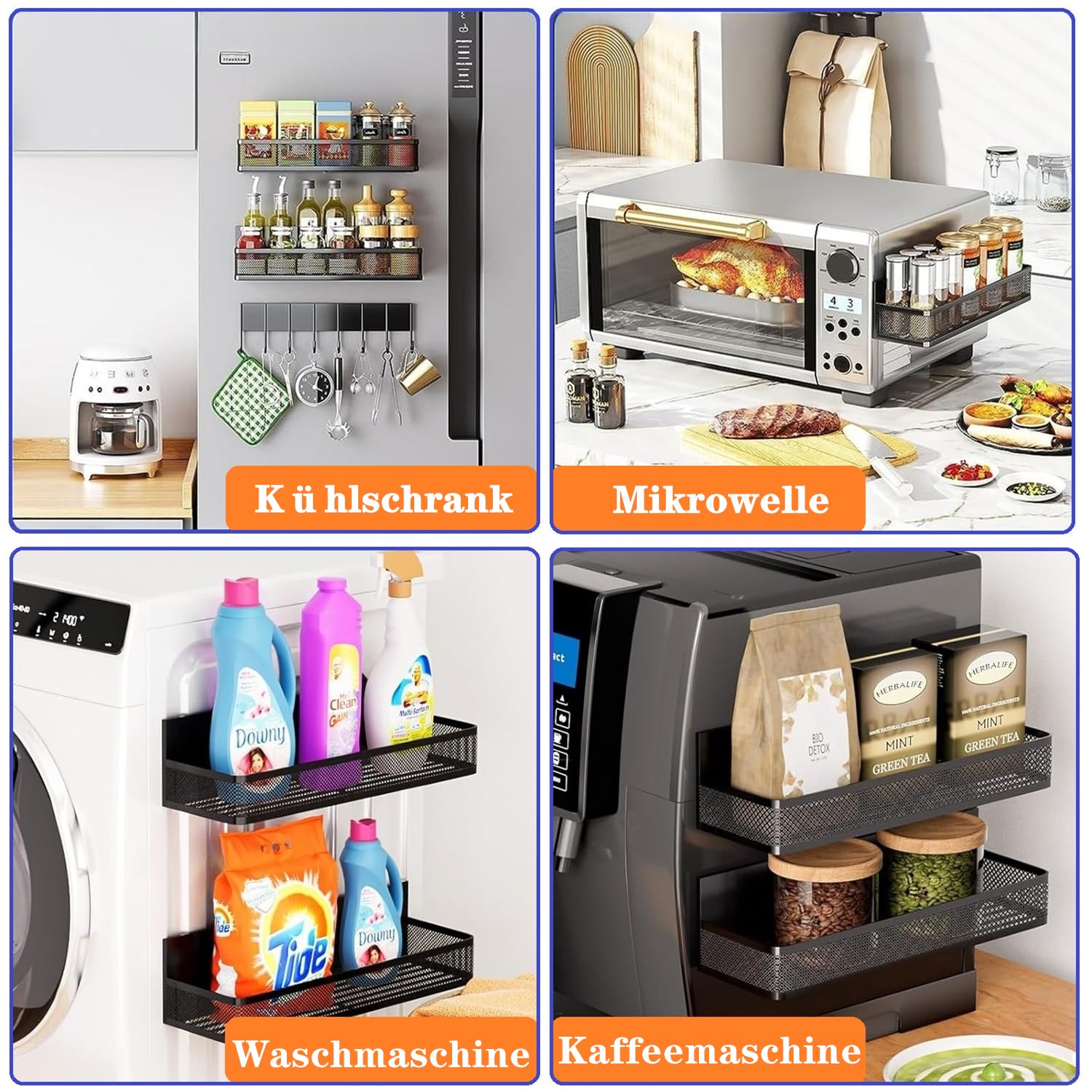Platzprobleme in der Küche? Dieses magnetische Regal-Set ist die Lösung! Einfach an den Kühlschrank pappen und schon hast du jede Menge Stauraum für Gewürze, Öle und Küchenutensilien - ganz ohne Bohren oder Kleben!