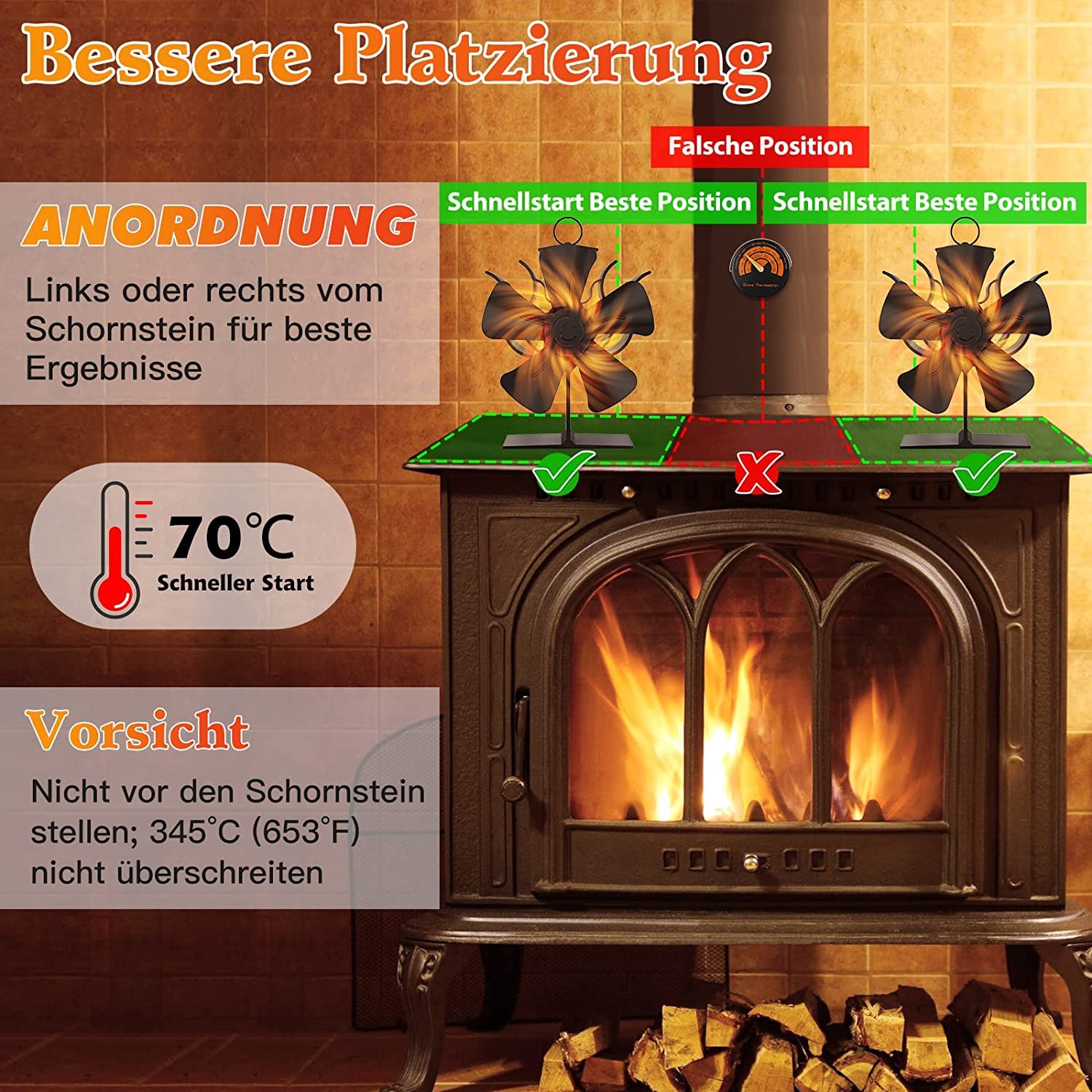Wow, dieser Ofenventilator ist echt clever - er braucht weder Strom noch Batterien! Er startet automatisch ab 50°C und nutzt einfach die Wärme deines Kamins oder Ofens. Mit 5 großen 200mm-Lüfterblättern und 60° Schwenkfunktion verteilt er die warme Luft super effizient im ganzen Raum. Ab 90°C schwenkt er sogar automatisch hin und her - wie praktisch ist das denn? Und bei über 350°C hebt er sich automatisch an, um sich vor Überhitzung zu schützen. Arbeitet super leise (unter 25 dB), also perfekt für gemütliche Kaminabende. Einfach auf den Ofen stellen und schon geht's los - keine Montage, kein Kabelsalat. Aus eloxiertem Aluminium, rostfrei und mega langlebig. Ob für Holzofen, Kamin oder Feuerstelle - damit wird dein Raum gleichmäßig warm, ohne dass die Heizkosten explodieren!