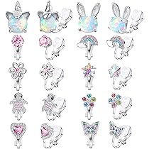 So viel süße Vielfalt! Dieses Set mit 10 Paar Ohrclips begeistert kleine Prinzessinnen mit Motiven wie Meerjungfrauen, Einhörnern, Sternen, Regenbögen und Blumen. Perfekt für Mädchen ohne Ohrlöcher - die Clips sitzen fest und sicher mit hautfreundlichen Gummipolstern. Jeder Clip wiegt nur ca. 3g und ist damit super leicht und angenehm zu tragen. Aus robustem Harz und Metall, die Farben verblassen nicht. Einfach anzulegen - auch für Kinder selbst geeignet. Perfektes Geschenk für Geburtstage, Kostümpartys oder als kleine Überraschung. Deine Tochter wird diese bezaubernden Ohrclips lieben!