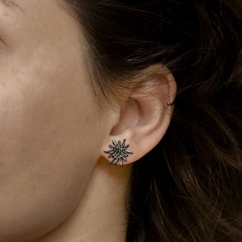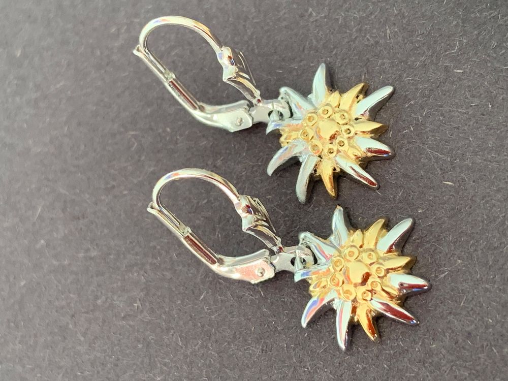 • Trachten Ohrringe Edelweiß - Oktoberfest Schmuck Antik Silber