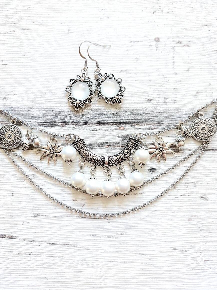 Trachten Ohrringe Edelweiß - Oktoberfest Schmuck Antik Silber