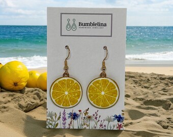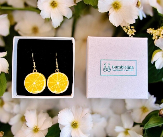 Frischer Sommer-Look! Diese niedlichen Zitronen-Ohrringe bringen Urlaubsfeeling in deinen Alltag. Aus leichtem Harz und Kupfer, in zwei Größen: 3,2cm und 6,4cm. Perfekt für Geburtstagspartys, Strandtage oder Festivals. Kommen in hübscher Geschenkbox - ideal als Mitbringsel. Die fröhlich-gelben Zitronen mit Blatt-Dekor machen jede Stimmung sonniger. Leicht und angenehm zu tragen. Hol dir diesen sommerlichen Style und werde zum Hingucker auf jeder Party!