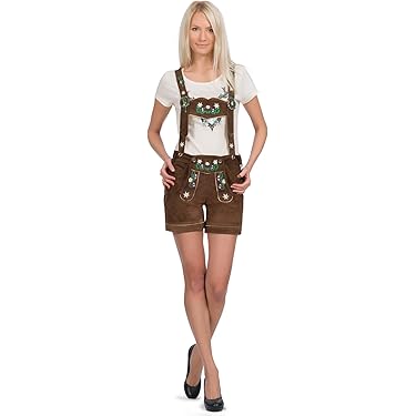 • Damen Lederhose Oktoberfest - Trachtenhose Knielang Mit Trägern Wildleder Optik