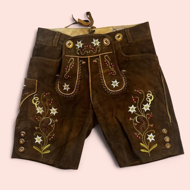 Perfekt für die Wiesn und andere Feste! Diese knielange Lederhose für Damen bringt bayrisches Flair in deine Garderobe. Aus weichem Rinderveloursleder in Wildleder-Optik - super bequem und schmiegt sich angenehm an. Die aufwändigen Stickereien im Jugendstil-Design sind ein absoluter Hingucker! Mit normaler Bundhöhe - betont deine Figur perfekt. Die praktischen Hosenträger sind wunderschön bestickt, aber du kannst die Hose auch ohne Träger oder mit Gürtel tragen - total flexibel! Kombinier sie mit Trachtenhemd, T-Shirt oder Leinenbluse und dazu flache Schuhe oder Kniestiefel. Ob auf dem Oktoberfest, Volksfest oder einfach um Tradition im Alltag zu zeigen - mit dieser Lederhose bist du immer perfekt angezogen. Die sexy Alternative zum Dirndl - garantiert viele Komplimente!