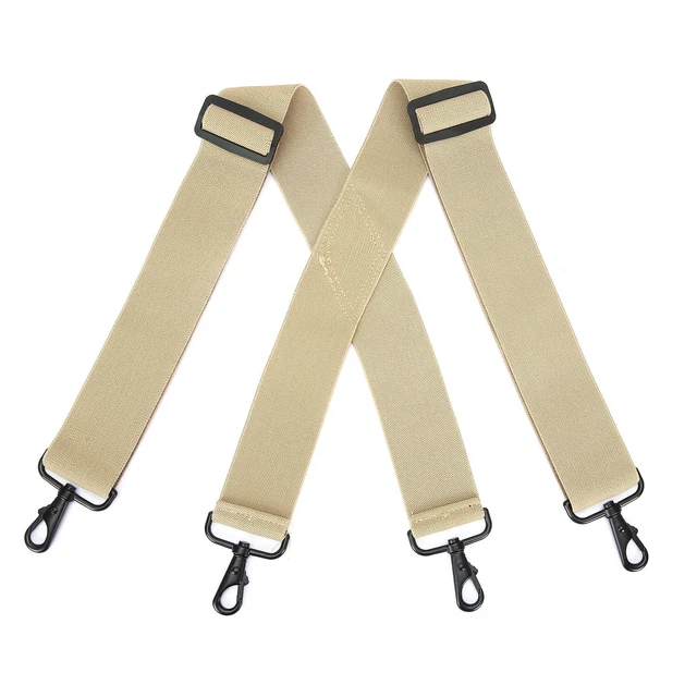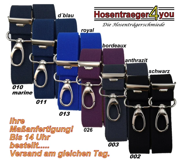 Richtig robuste X-Hosenträger von Olata! Extra breit mit 5cm Trägern für optimalen Komfort - verteilen das Gewicht super auf den Schultern. Mit praktischen Kunststoff-Karabinerhaken die sicher an den Gürtelschlaufen einrasten. Voll verstellbar bis 135cm - passt für Erwachsene bis 2m Größe. Das verstärkte Kreuzleder gibt zusätzliche Stabilität. Aus Polyester und Elastan in der EU gefertigt - elastisch und langlebig. Perfekt für Arbeit, Handwerk oder als stylisches Accessoire. In verschiedenen Farben erhältlich. Einfach ein Qualitätsprodukt das hält was es verspricht!