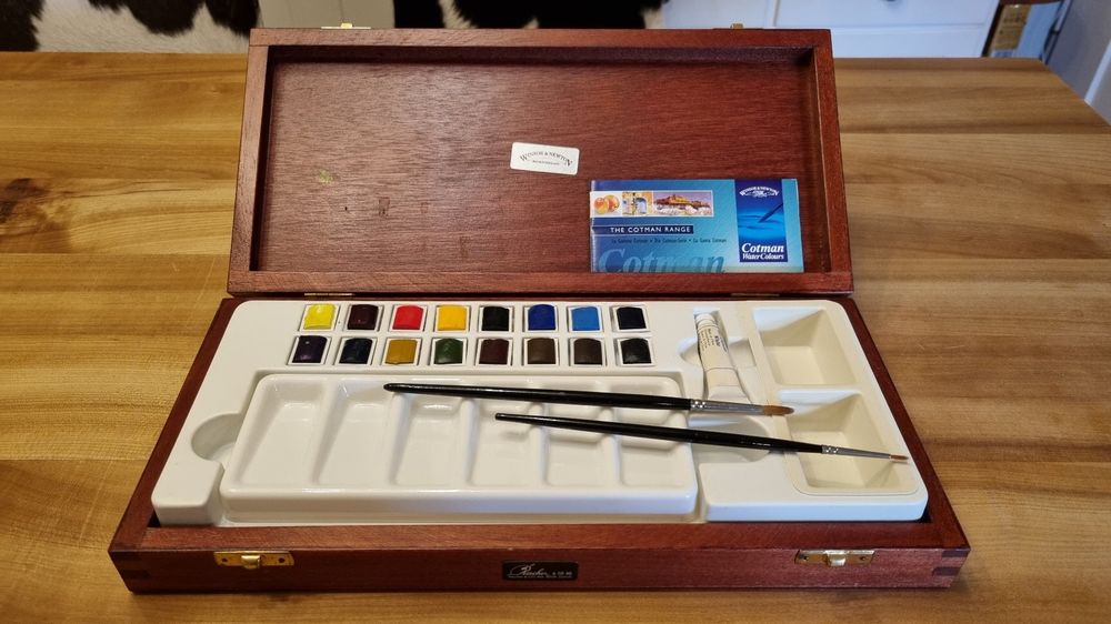 Dein mobiles Atelier für unterwegs! Dieser Olgary Mini Aquarellkasten hat alles, was du für spontane Malabenteuer brauchst. Mit 24 pigmentstarken Farben, verpackt in zwei praktischen Buchenholz-Paletten (15 + 8 Fächer). Im Set: 2 Synthetikpinsel (Rundpinsel 2 und Flachpinsel 6mm) plus ein Skizzenbuch mit 120g/m² Baumwollpapier (9x14cm). Super kompakt - nur 14×9×3,5cm groß und 380g leicht - passt in jede Handtasche! Der magnetische Verschluss schützt deine Farben vor Austrocknung. Die Deckelinnenseiten kannst du prima als Mischflächen nutzen. Perfekt für Urban Sketching, Reisen oder einfach mal schnell im Park. Ob in Paris oder am Rhein - mit diesem Set bist du immer kreativ bereit. Einfach auspacken und loslegen - deine Inspiration wartet nicht!