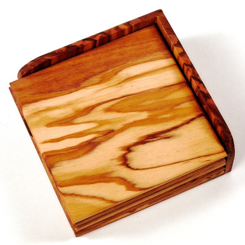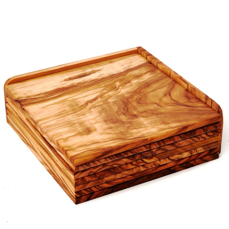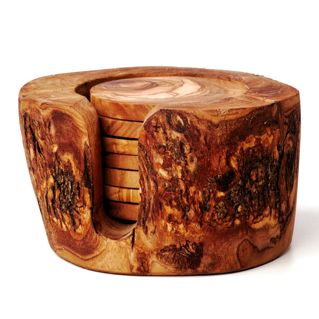 6er Set Untersetzer Olivenholz - Handgemachte Holzuntersetzer Naturschnitt