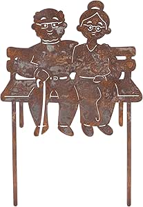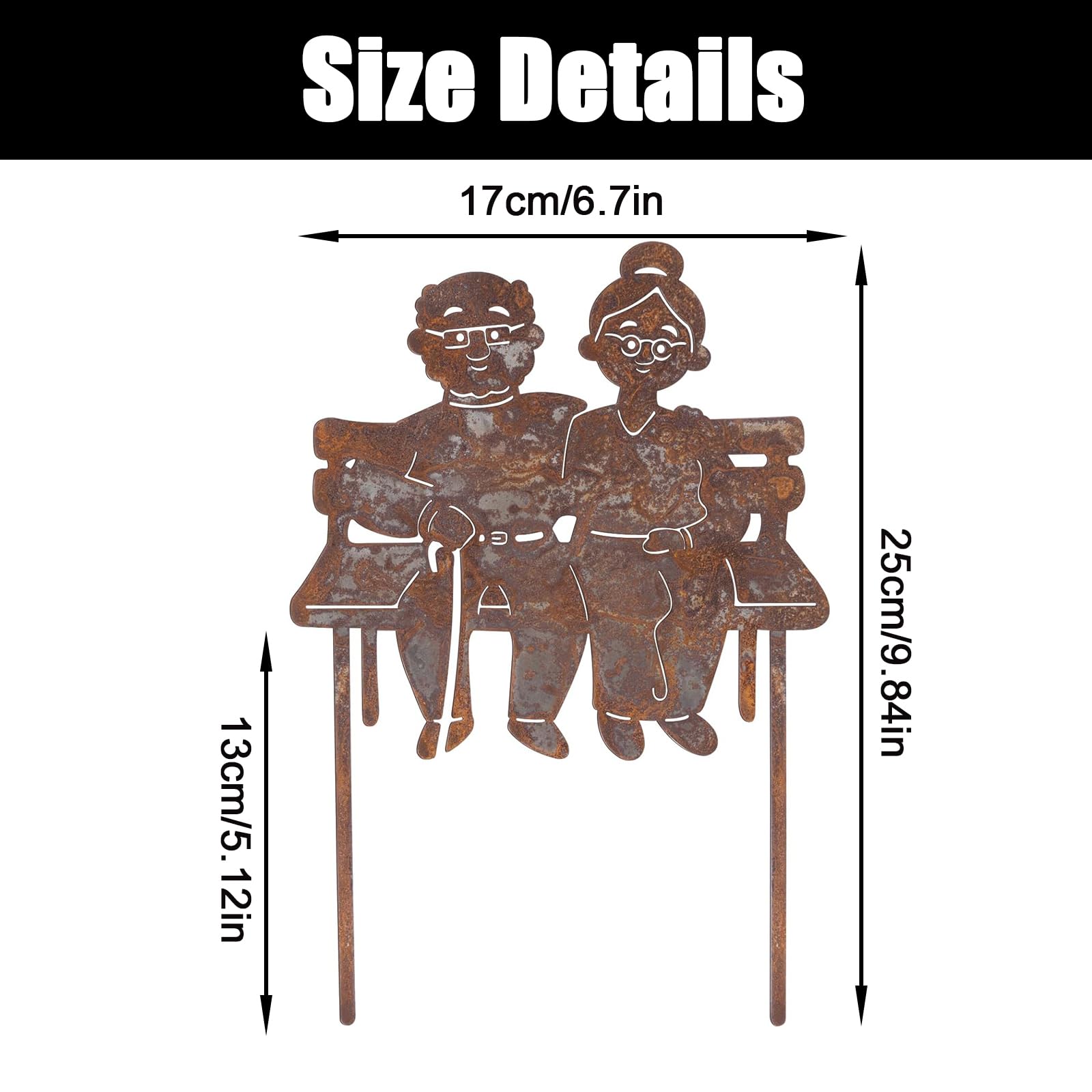 Onperpoe Oma & Opa Gartenfiguren - Roststecker Mit Patina 21x22cm