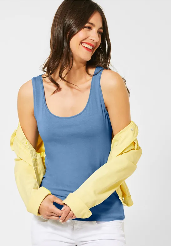 So ein Basic-Top gehört einfach in jeden Kleiderschrank! Das Street One Anni Top sitzt perfekt eng anliegend und hat einen klassischen Rundhalsausschnitt. Die Unifarbe macht es super vielseitig kombinierbar - ob unter einem Blazer fürs Büro oder einfach so mit Jeans für den Alltag. Super weiches Material das sich angenehm auf der Haut anfühlt. Perfekt für lässige Outfits oder auch mal schicker gemacht. Ein echter Allrounder der nie aus der Mode kommt. Einfach anziehen und du bist perfekt angezogen!