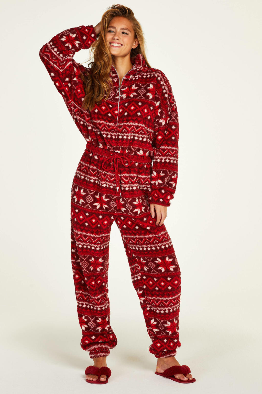 Kuscheliger geht's kaum! Dieser Fleece-Onesie von Hunkemöller ist dein bester Freund an kalten Winterabenden. Weich, warm und super bequem - einfach perfekt zum Entspannen auf der Couch. Mit langen Ärmeln und langen Hosenbeinen, plus praktischen Vordertaschen für deine Snacks oder die Fernbedienung. Kombiniere ihn mit flauschigen Hausschuhen für den ultimativen Wohlfühl-Moment. Ob für gemütliche Filmabende, Übernachtungspartys oder einfach nur zum Rumlümmeln - in diesem Onesie fühlst du dich wie in einer warmen Umarmung. Aus qualitativ hochwertigem Fleece-Material, das sich angenehm auf der Haut anfühlt. Dein Ticket für perfekte Entspannung!