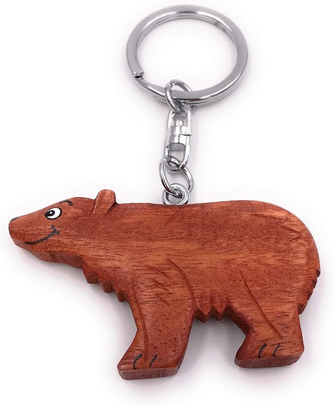 • Onwomania Dachs Schlüsselanhänger - Holz Glücksbringer Mit Tierdesign