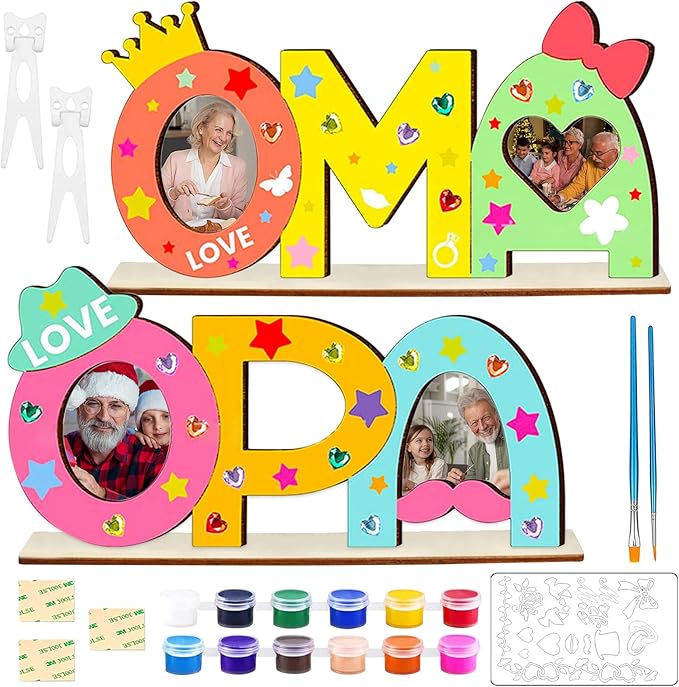 Was schenkt man Oma und Opa? Etwas Selbstgemachtes! Mit diesem süßen Bastelset können deine Kinder die Holzbuchstaben OMA und OPA nach ihren Wünschen gestalten - bemalen, bekleben oder mit Fotos verzieren. Die Buchstaben sind hohl, sodass man Fotos reinsetzen kann, und sie stehen auf einem stabilen Sockel. Aus robustem Holz gefertigt, sind sie sicher und langlebig. Eine tolle Beschäftigung für Kinder und ein einzigartiges Geschenk, das von Herzen kommt. Perfekt für Geburtstage, Weihnachten oder einfach so - damit machst du Großeltern garantiert glücklich!