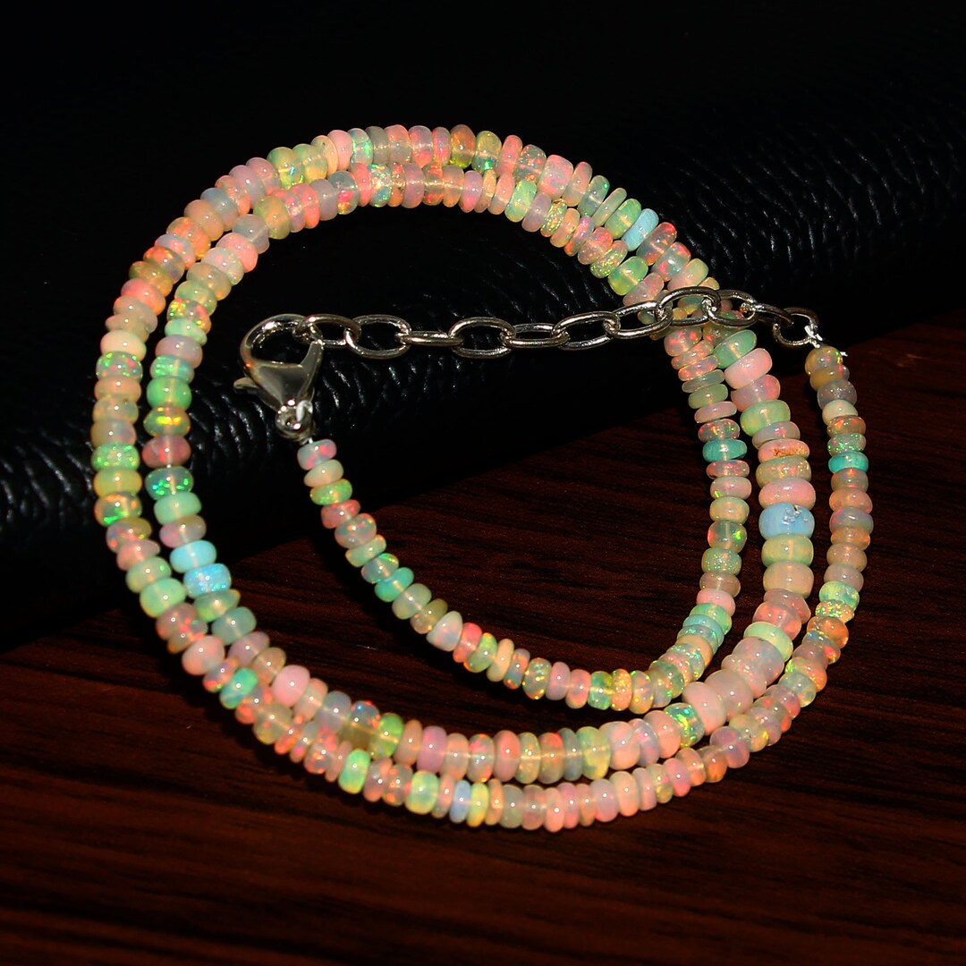 Diese äthiopischen Opal-Perlen sind einfach wunderschön! Jede Perle ist ein Unikat mit ihrem einzigartigen Farbspiel. Als Welo-Opal bekannt, zeigen sie traumhafte Regenbogenfarben. Der Strang ist 40,6 cm lang mit glatten Rondellen von 3mm Durchmesser. Perfekt zum Basteln von Schmuck, Armbändern, Halsketten oder zur Verzierung von Kleidung. Da CHIKLEET Hersteller ist, können wir dir auch individuelle Produkte nach deinen Wünschen anbieten. Einfach anfragen! Die Perlen sind handverlesen und von bester Qualität. Ob für dich selbst oder als Geschenk - mit diesen Opal-Perlen kreierst du garantiert einzigartige Schmuckstücke, die alle Blicke auf sich ziehen!