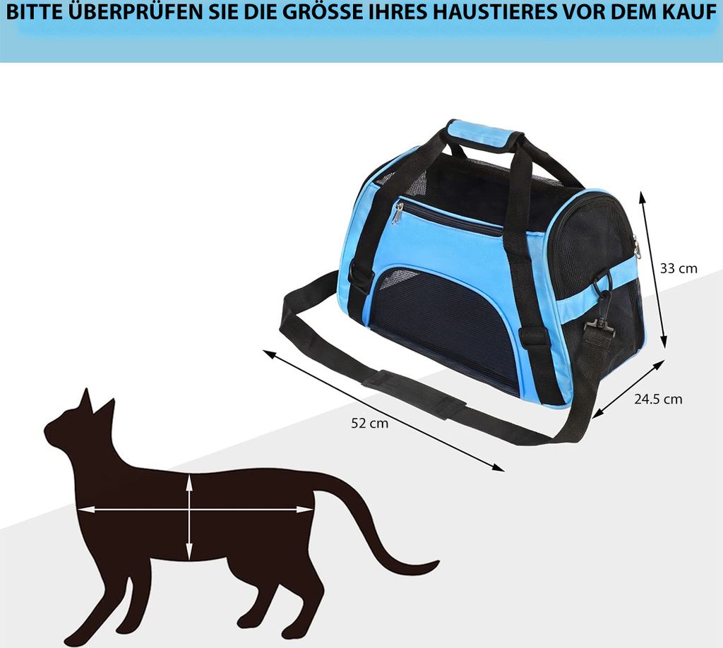 Wow, diese Transportbox von Optizium ist ja mal praktisch! In Größe L mit 52x24,5x33 cm für Haustiere bis 10 kg. Airline-geprüft und passt unter die meisten Flugzeugsitze. Aus wasserdichtem Polyester mit kratzfestem Netz. Vier Seiten Belüftung und drei Eingänge sorgen für gute Luft und Sicht. Mit verstellbarem Schultergurt und Möglichkeit, sie am Gepäck zu befestigen. Nach dem Gebrauch einfach zusammenfalten und platzsparend verstauen. Perfekt für Flugreisen, Tierarzt-Besuche oder Spaziergänge im Park. Dein Haustier reist sicher und bequem!