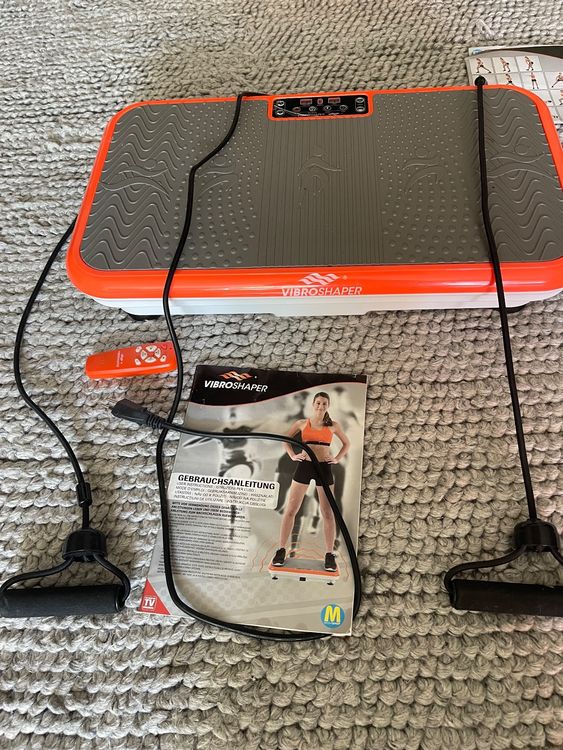 • Orange Gym Vibrationsplatte | 5 Programme & 120 Stufen | Mit Fernbedienung & Widerstandsbändern
