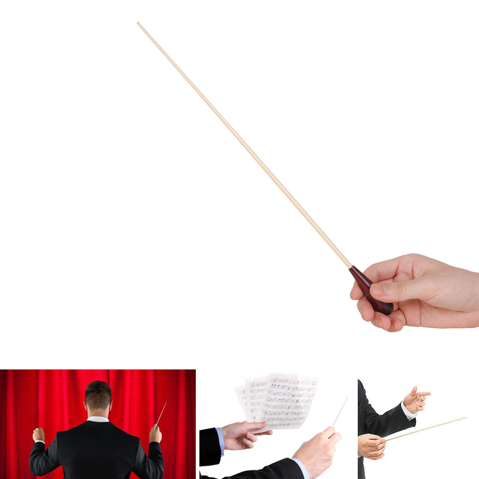 Für alle angehenden Dirigenten und Musikbegeisterten! Dieser klassische Dirigierstab mit Holzgriff ist ein echter Profi-Begleiter. Mit einer Gesamtlänge von 38,3 cm und einem angenehm geformten Holzgriff liegt er perfekt in der Hand. Der Stab selbst besteht aus flexiblem Fiberglas - robust genug für enthusiastische Einsätze, aber dennoch federleicht mit nur 13 Gramm Gewicht. Perfekt für Musikunterricht, Schulorchester, Chorproben oder Marschmusik-Aufführungen. Der ergonomische Griff verhindert Handermüdung auch bei langen Proben - super wichtig für ernsthafte Musiker. Egal ob du gerade erst mit dem Dirigieren anfängst oder schon Erfahrung hast, dieser Taktstock gibt dir die nötige Präzision und Kontrolle. Auch ein tolles Geschenk für Musiklehrer, Chorleiter oder jeden, der sich für klassische Musik begeistert. Einfach in der Hand halten und die Magie der Musik dirigieren!