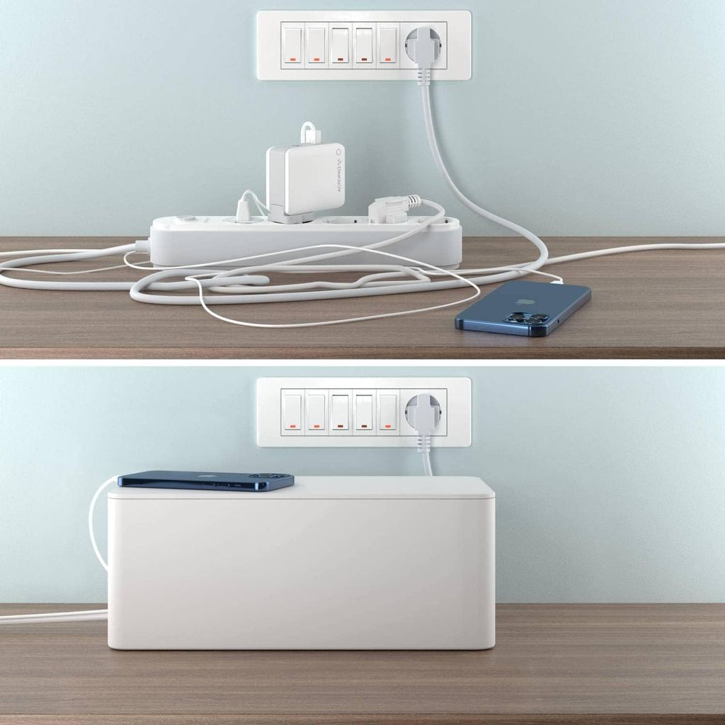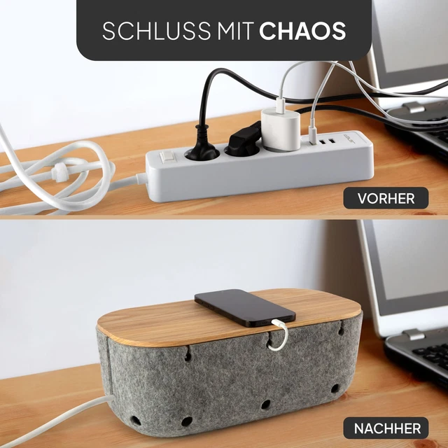 Schluss mit dem Kabelsalat! Diese praktische Kabelbox von Stronrive bringt Ordnung in deine Steckdosenleisten und Kabel. Mit 29,5x11,4x11cm bietet sie genug Platz für mehrere Stecker und Kabel. Aus robustem Ahorn und Kunststoff - schlagfester als normale Plastikboxen. Die Oberseite dient gleichzeitig als Handy-Ständer während des Ladens. Super praktisch! Reduziert potenzielle Stromunfälle und schützt vor neugierigen Kinderhänden. Einfach alle Kabel reinlegen, Deckel zu - schon sieht alles ordentlich aus. Erhältlich in Weiß oder Schwarz, passt zu jedem Einrichtungsstil. Ein tolles Geschenk für ordnungsliebende Menschen! Mach dein Zuhause sicherer und aufgeräumter - ohne ständiges Kabelgewühle. Perfekt fürs Wohnzimmer, Home-Office oder Kinderzimmer.