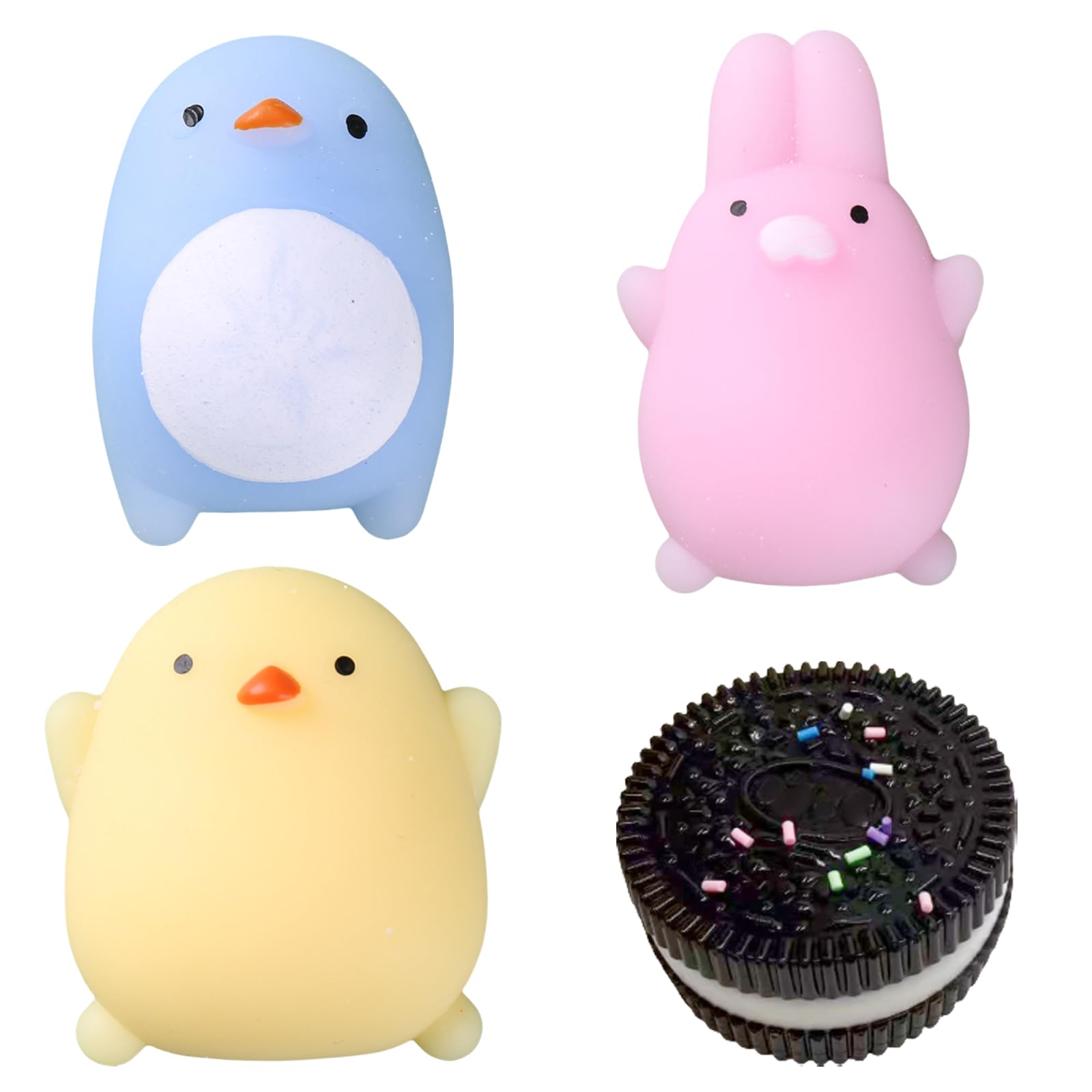 Entspannung zum Kneten! Diese 4 ultraweichen Oreo Squishies in Schwarz, Pink, Helllila und Hellblau sind dein perfekter Stresskiller. Mit realistischen Zuckerstreuseln und 6,5cm Durchmesser.