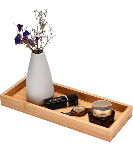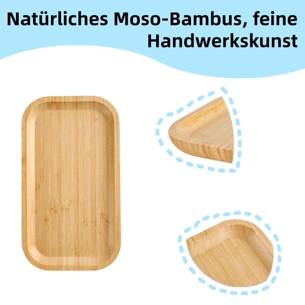 Ordnung muss nicht langweilig sein! Dieses Set mit zwei ovalen Bambus-Tabletts bringt natürlichen Charme in dein Zuhause. Aus nachhaltigem Moso-Bambus gefertigt, sind die 17,5x8,8x1cm großen Tabletts die perfekten Ordnungshüter für Schmuck, Schlüssel, Münzen und andere Kleinigkeiten. Die warme Khaki-Farbe harmoniert mit jedem Einrichtungsstil - ob modernes Bad, schicker Schminktisch oder praktischer Flurbereich. Die glatte, splitterfreie Oberfläche schont empfindliche Gegenstände wie Schmuck oder Uhren. Einfach mit einem trockenen Tuch abwischen und schon strahlt das Naturmaterial wieder. Mit zwei Tabletts im Set kannst du verschiedene Bereiche organisieren: Eins für deine täglichen Accessoires auf dem Nachttisch, das andere für Kosmetik im Bad. Ökologisch, stylisch und super praktisch - so geht Aufräumen mit Stil!