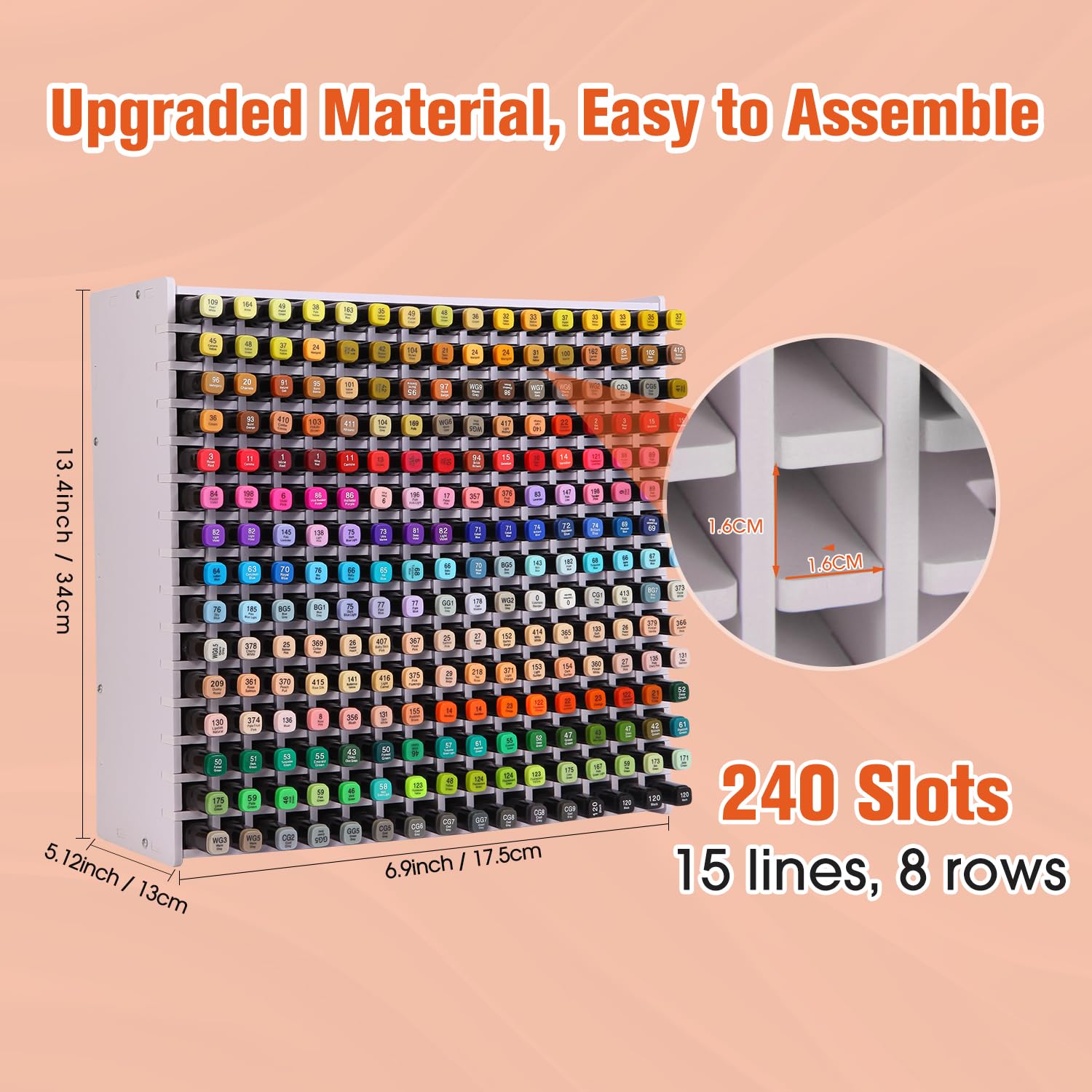 Endlich Ordnung im Chaos! Dieser Stifte-Organizer mit 240 einzelnen Fächern bringt System in deine Stiftsammlung. Jedes Fach hat 1,7cm Abstand - perfekt für Marker, Buntstifte, Bleistifte und sogar Pinsel. Die abnehmbaren Trennwände machen den Organizer super flexibel - passe die Fächer einfach deinen Bedürfnissen an. Aus verdicktem PVC-Material, das sich nicht verbiegt oder bricht. Durch die stabile Schraubbefestigung steht alles sicher, auch wenn's voll beladen ist. Mehrere Organizer lassen sich stapeln und sparen Platz. Schlichtes Design passt in jedes Büro, Klassenzimmer oder Künstler-Studio. Nie wieder suchen - alles griffbereit und übersichtlich sortiert!