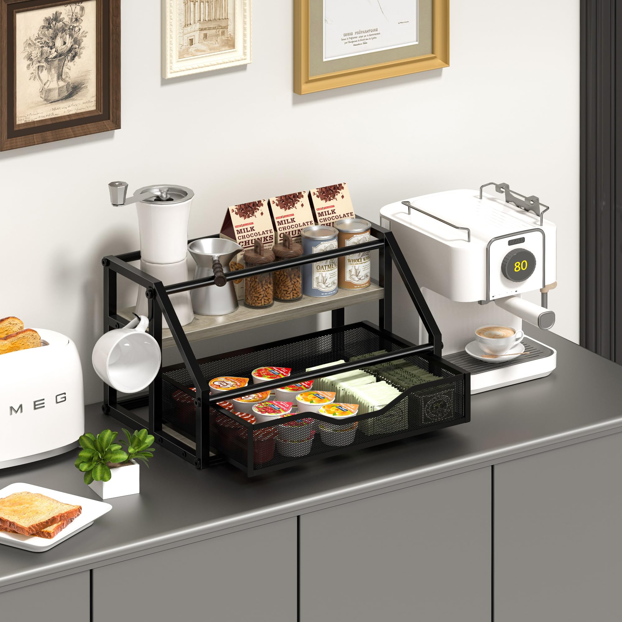 Schluss mit unordentlichen Flaschen auf der Arbeitsplatte! Dieser stylische MK816A Organizer aus rustikalem Holz und Metalldraht bringt System in deine Küche oder Bar. Mit 4 Etagen bietet er Platz für bis zu 4 Flaschen - ob Kaffeesirup, Wein, Likör oder Gewürze. Das vertikale Stufen-Design spart nicht nur Platz, sondern macht alle Flaschen gut sichtbar und griffbereit. Die Maße von 29,7x39,1x10,9cm sind perfekt für die Theke und passen für Flaschen bis 9,7cm Durchmesser. Aus hochwertigem Paulownia-Holz und rostfreiem Metall gefertigt, steht er stabil und sicher. Ohne Montage - einfach hinstellen und schon ist deine Kaffee-Station organisiert! Sieht nicht nur praktisch aus, sondern verleiht deinem Raum auch einen vintage-modernen Touch. Perfekt für Zuhause, Café, Restaurant oder Bar - wo auch immer Flaschen Ordnung brauchen!