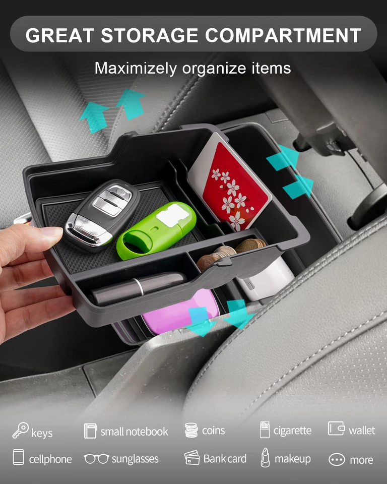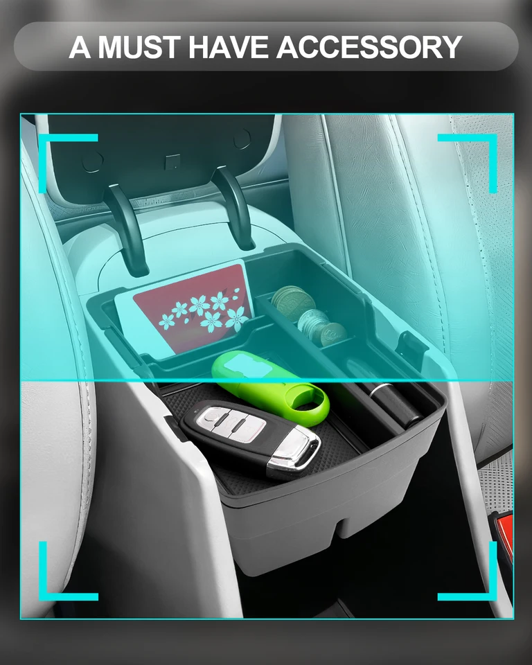 Hyundai Kona 2024/2025 Besitzer - dieser Organizer bringt Ordnung in eure Mittelkonsole! Speziell für Kona SX2 Hybrid PHEV mit manuellem Schaltgetriebe oder Automatik-Schalthebel. Achtung: Nicht für elektronische Automatikgetriebe oder E-Versionen! Aus robustem ABS-Kunststoff, wasser- und staubdicht. Mit Anti-Rutsch-Matte damit nichts verrutscht. Mehrere Fächer für Münzen, Kreditkarten, Handy, Kabel und Kleinkram. Einfach in die Mittelkonsole legen - keine Montage nötig. Endlich kein Chaos mehr im Auto! Einfach reinlegen und sich über mehr Stauraum und Ordnung freuen.
