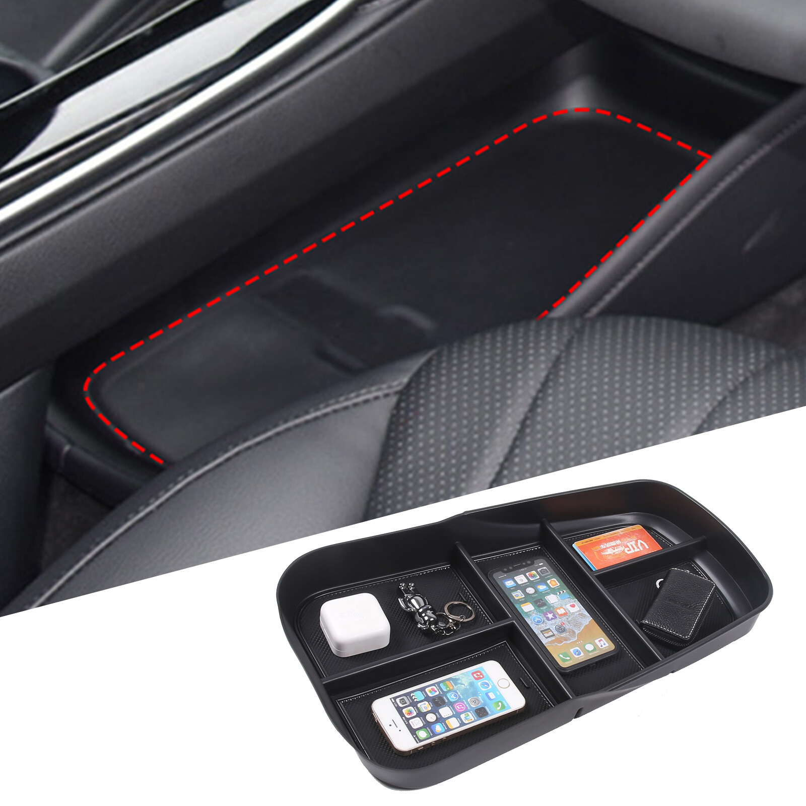 Der Organizer wird einfach in die Armlehne eingebaut und bietet Platz für: • Smartphone • Schlüssel • Sonnenbrille • Kleingeld • Andere Kleinigkeiten