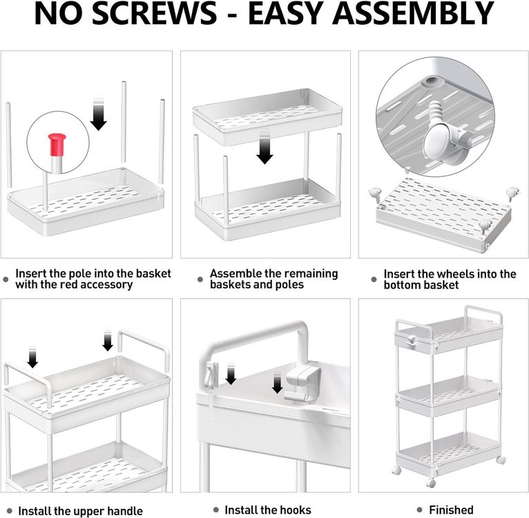 Dieser Aufbewahrungswagen mit Rollen ist der absolute Organisationstal für Zuhause oder Büro! Mit seinen praktischen 3 oder 4 Ebenen bietet er reichlich Stauraum für alles, was sonst so herumliegt. Die Maße von 37x25x71,5 cm (3 Ebenen) bzw. 37x25x98,5 cm (4 Ebenen) sind super kompakt und passen auch in kleinere Ecken. Das Beste: Die vier Rollen machen den Wagen super mobil - einfach von Raum zu Raum schieben! Der Rahmen aus hochwertigem ABS ist nicht nur robust und langlebig, sondern auch super leicht zu reinigen. Die integrierten Griffe sorgen für bequemes Transportieren, und die Bodengitter verhindern, dass etwas herunterfällt. Besonders praktisch: Der Aufbau ist super einfach - mit der beiliegenden Anleitung ist der Wagen im Handumdrehen einsatzbereit. Ob in der Küche für Gewürze, im Bad für Pflegeprodukte, im Wohnzimmer für Zeitschriften oder im Büro für Utensilien - dieser Alleskönner bringt Ordnung in jedes Chaos. Und das Beste: Durch die verschiedenen Farben passt er sich jedem Einrichtungsstil an!
