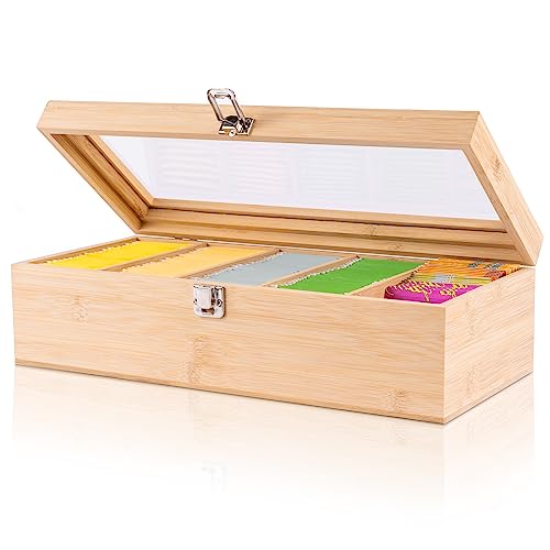 • UTHCLO Holz Tee Organizer Mit Fächern - Aufbewahrungsbox Für Tee Und Kaffeepads