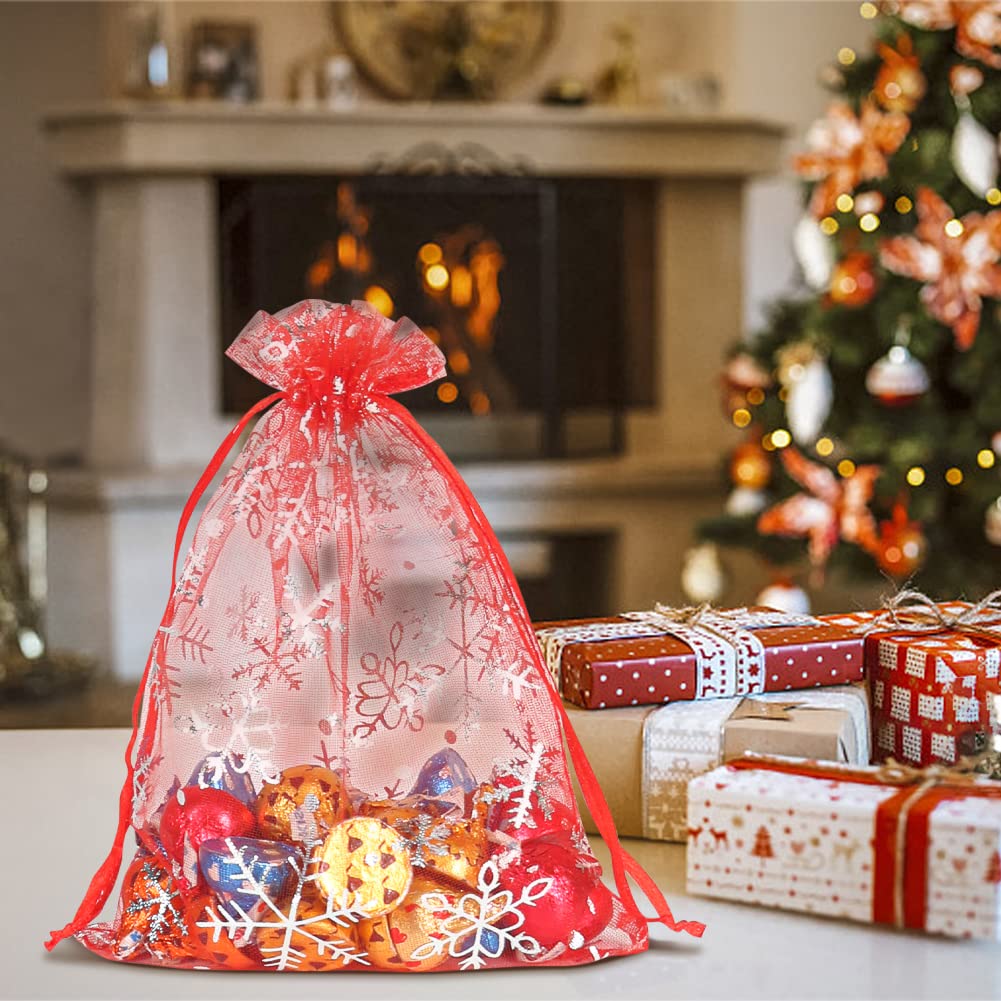 Perfekt für die Weihnachtszeit! Diese 100 roten Organzasäckchen mit niedlichem Schneeflocken-Design sind ideal zum Verpacken kleiner Geschenke. Mit den Maßen 13x18cm passen Süßigkeiten, Schmuck, Ohrringe, Armbänder und andere Kleinigkeiten perfekt hinein. Das Satin-Zugband macht das Öffnen und Schließen super einfach. Aus transparentem Organza gefertigt, der die Überraschung erahnen lässt aber nicht verrät. Nicht nur zu Weihnachten geeignet - auch für Geburtstage, Hochzeiten, Valentinstag oder als Aufbewahrung für Schmuck und Bastelutensilien. Im praktischen 100er-Set hast du immer genug Beutel zur Hand. Mach deine Geschenke zu etwas Besonderem und verpacke sie in diesen eleganten Organzasäckchen - deine Liebsten werden begeistert sein!