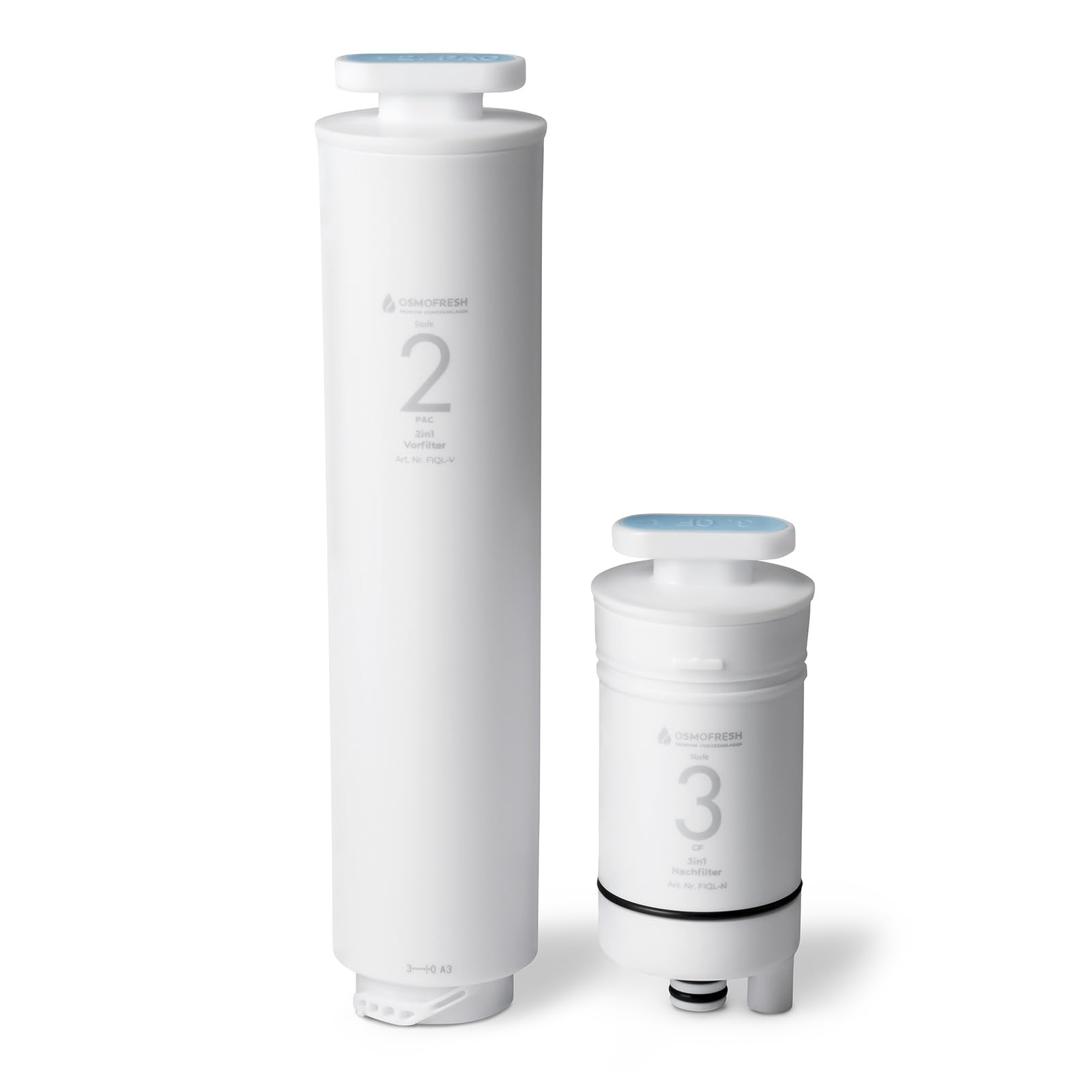 Perfektes Wasser ganz einfach! Dieses OsmoFresh 6in1 Filter-Set ist der absolute Game-Changer für deine Fusion Osmoseanlage. Mit dem cleveren QuickChange-System wechselst du die Filter in Sekunden - kein Gefummel, kein Wassergeplatscher! Der 3in1 Vorfilter mit Sedimentfilter und Aktivkohle schützt deine Membran zuverlässig, während der 3in1 Nachfilter mit Spezialaktivkohle und Mineralien für perfekten Geschmack sorgt. Das beste: Die Anlage überwacht sich selbst! Sie misst den TDS-Wert und erinnert dich, wenn's Zeit für den Wechsel ist. Kompatibel mit Fusion Pro, Ice und Stream - einfach den alten Filter raus, neuen rein und weiter geht's mit kristallklarem Wasser. Nie war Wasseraufbereitung so unkompliziert!
