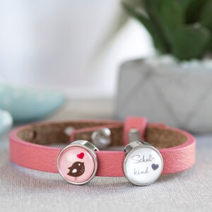 Was für eine süße Idee für die Einschulung! Dieses Mutter-Tochter Armband-Set gibt deinem Mädchen Mut für den ersten Schultag. Ein Armband mit Liebesherz für die Tochter, eines mit umlaufendem Herz für die Mama. Symbolisiert: 'Ich bin immer für dich da!' Aus nickelfreiem Material - hautverträglich und reißfest. Verstellbar - passt jedem Handgelenk. Mit schöner Grußkarte - perfekt verpackt als Geschenk. Deine Tochter trägt deine Liebe den ganzen Schultag mit sich!