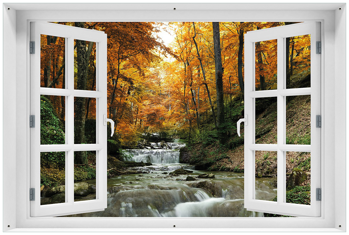 Dieses Wallario Outdoor Poster bringt Naturfeeling in deinen Garten! 60x90cm groß mit nem romantischen Bach-Motiv das über Steine fließt. Auf robustem Kunststoffmaterial gedruckt - komplett witterungsbeständig.