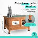 Deine Freigänger-Katzen frieren im Winter? Dieses beheizte Katzenhaus hält sie warm und sicher! 77,5x49,5x55,7cm groß, Platz für 2-3 Katzen. Mit isolierten Wänden, wasserdichtem Design und erhöhtem Boden. Das Haustier-sichere Heizkissen wärmt auch bei Minusgraden. Zwei Fluchttüren für extra Sicherheit. Einfach ohne Werkzeug aufzubauen, mit Klettverschluss. Im Sommer einfach Heizkissen entfernen - dann ist es ein kühler Rückzugsort. Deine Katzen werden dieses gemütliche Zuhause im Freien lieben!