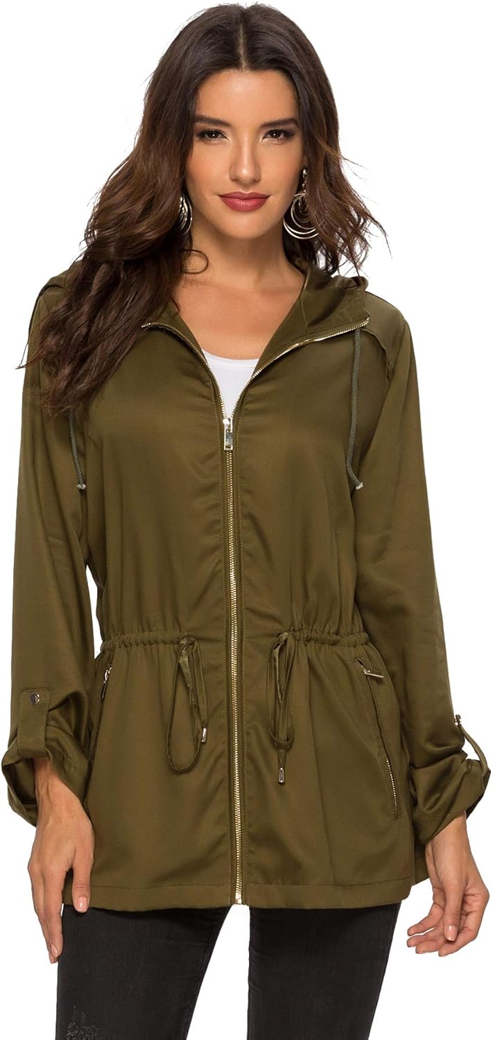 ZWDC Damen Kapuzenjacke - Lange Outdoorjacke Mit Kordelzug Und Taschen