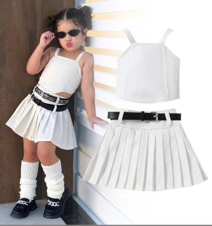 Dieses süße Outfit-Set besteht aus einem trendigen ärmellosen Top und einem Rock mit hübschem Blättermuster - perfekt für modebewusste Mädchen von 7-12 Jahren. Aus weichem Polyester, der sich angenehm trägt und pflegeleicht ist.