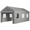 Dieses massive Outsunny Carport-Zelt ist der perfekte Schutz für dein Auto oder als Lagerplatz! Mit riesigen 6x2,95x2,78m (LxBxH) bietet es Platz für fast jedes Auto - vom Stadtflitzer bis zum SUV. Das stabile Gestell aus verzinktem Stahl hält wirklich was aus und die hochwertige PE-Plane mit 160g/m² Dichte ist komplett wasserdicht, UV-beständig, wind- und schneesicher. Besonders praktisch: die 2 aufrollbaren Türen mit Reißverschluss - du kannst sie komplett schließen für maximalen Schutz oder teilweise öffnen für bessere Belüftung. Die 6 Fenster mit Moskitonetz und Rollvorhängen sorgen für genug Licht und Luftzirkulation. Perfekt nicht nur für Autos, sondern auch als Lager für Gartengeräte, Bastelsachen oder andere Utensilien. Die Plane wird mit vielen Kordeln sicher am Gestell befestigt - nichts flattert weg bei Sturm. Einfach ein super praktisches Allround-Talent für Garten, Hof oder Grundstück - deine Sachen sind damit bestens geschützt!