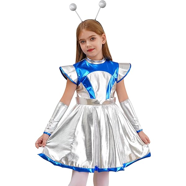 Ob als Astronautin, Galaxie-Kriegerin oder interstellare Reisende - mit diesem Outfit sind der Fantasie keine Grenzen gesetzt. Der Haarreif mit den süßen Antennen komplettiert den Look perfekt. Einfach anziehen und abheben!