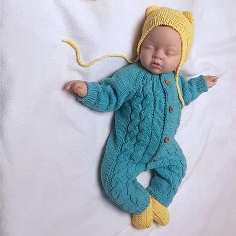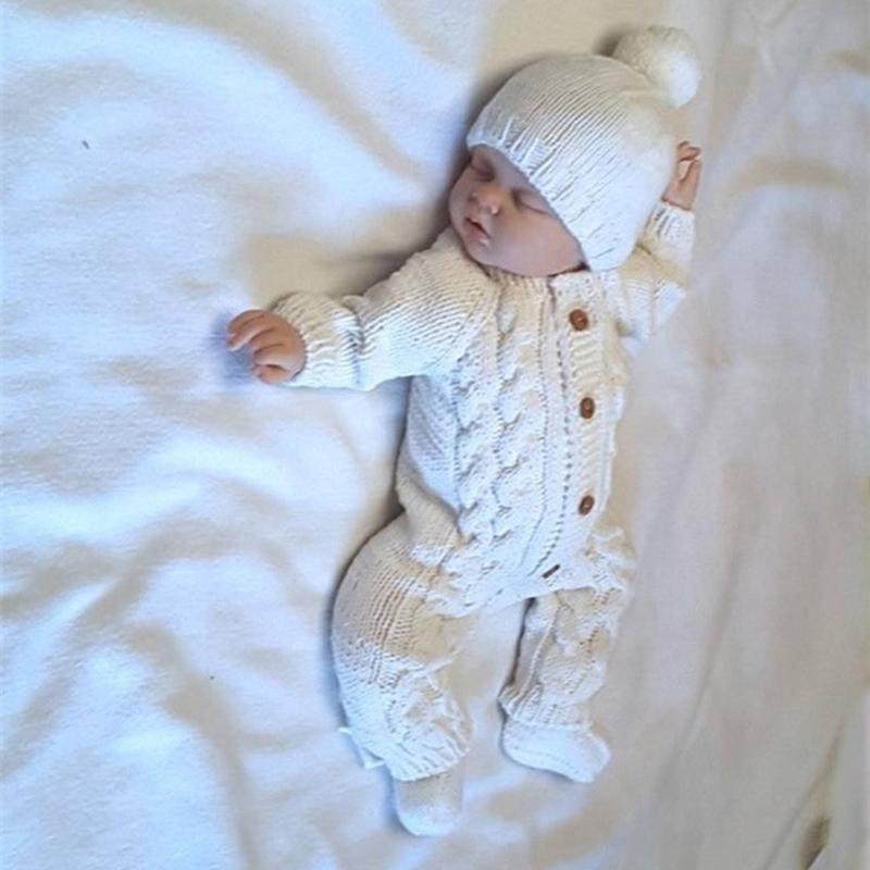 Baby Strampler Set - Gestrickter Overall Mit Mütze 0-6 Monate