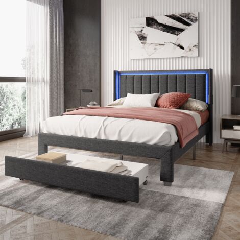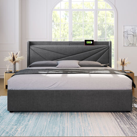 Träumst du von einem Bett, das nicht nur super bequem ist, sondern auch noch richtig was kann? Dann schau dir dieses Oxtao Polsterbett an - es ist wie aus der Zukunft!\n\nWas macht dieses Bett so besonders?\n• Maße: 180x200 cm (ohne Matratze)\n• Grauer Leinenstoff - schick und pflegeleicht\n• Integrierte LED-Beleuchtung mit App-Steuerung\n• 4 Ladeanschlüsse (inkl. Quick Charge)\n• Praktische Ablagefächer am Kopfteil\n• Stauraum unter dem Bett für Kisten\n\nStell dir vor:\n\nDu liegst im Bett und möchtest lesen? Kein Problem - die LED-Beleuchtung bietet über 60.000 Farben! Du kannst sie per App oder Fernbedienung steuern. Sogar ein Musik-Modus ist dabei - die Lichter tanzen im Rhythmus deiner Lieblingssongs.\n\nDein Handy-Akku ist leer? Muss du nicht mehr aufstehen! Am Kopfteil findest du USB-Anschlüsse und sogar einen Type-C Port. Einer davon ist ein Schnelllade-Anschluss - dein Handy ist im Nu wieder einsatzbereit.\n\nWo kommen Buch, Fernbedienung und Handy hin? Das Bett hat praktische Ablagefächer an beiden Seiten. Sogar eine kleine Stoffschublade ist dabei. Alles griffbereit, aber ordentlich verstaut.\n\nUnd das Beste: Unter dem Bett ist genug Platz für Aufbewahrungskisten. Oder dein Staubsaugerroboter kann problemlos durchfahren. Saubermachen war noch nie so einfach!\n\nAber ist es auch stabil? Aber sicher! Massivholz-Lattenrost und stabile Metallbeine tragen bis zu 300 kg. Metallschienen am Kopfende verhindern, dass die Matratze verrutscht.\n\nMontage nötig? Ja, aber keine Sorge - alles Notwendige ist dabei. Die Anleitung ist verständlich und falls doch mal ein Teil fehlen sollte, hilft der Kundenservice sofort.\n\nPflege? Einfach mit feuchtem Tuch abwischen. Bei stärkerer Verschmutzung mildes Reinigungsmittel verwenden.\n\nDieses Bett ist mehr als nur ein Möbelstück - es ist deine Wohlfühloase. Modern, funktional und mega bequem. Dein Schlafzimmer wird zum Lieblingsraum!