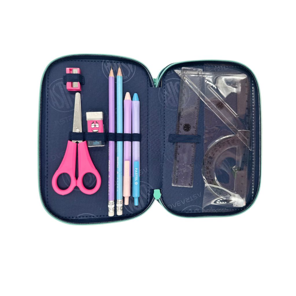 Das perfekte Federmäppchen für Schulkinder! Dieses PASO 3-Fach Mäppchen im süßen Stitch-Design begeistert jedes Mädchen. Hochwertige Verarbeitung mit robusten Nähten, die auch bei täglichem Gebrauch lange halten. Drei separate Fächer mit zuverlässigen Reißverschlüssen - alles bleibt sicher an seinem Platz. Und das Beste: Es ist bereits komplett gefüllt! Enthalten sind 18 Buntstifte, 18 Filzstifte, Radiergummi, Anspitzer, Lineal, 2 Bleistifte, Kugelschreiber, Notizblock und ein Hausaufgabenheft. Alles, was dein Kind für die Schule braucht, in einem Mäppchen! Das faltbare Design macht die Organisation super einfach. Farbenfrohes Motiv, das Kinder lieben werden. Ein tolles Geschenk zur Einschulung oder für das neue Schuljahr!