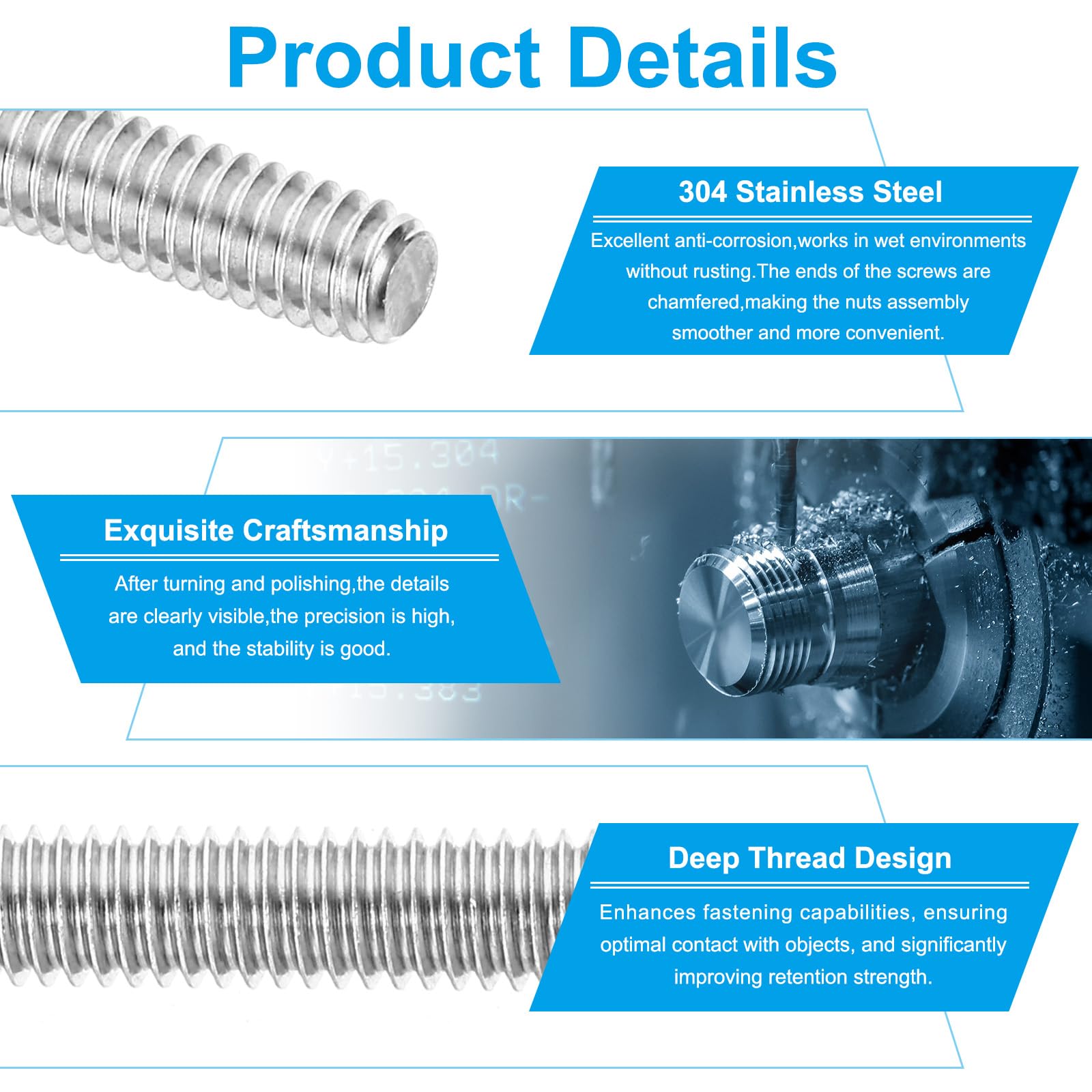 Hey, für alle Heimwerker und Profis - diese Edelstahl-Gewindestangen von PATIKIL sind echt praktisch! Aus robustem 304er Edelstahl gefertigt, sind sie super korrosionsbeständig und halten auch bei Feuchtigkeit ewig. Perfekt für Verankerungen, U-Bolzen, Lichtmaste oder Sprinkleranlagen.