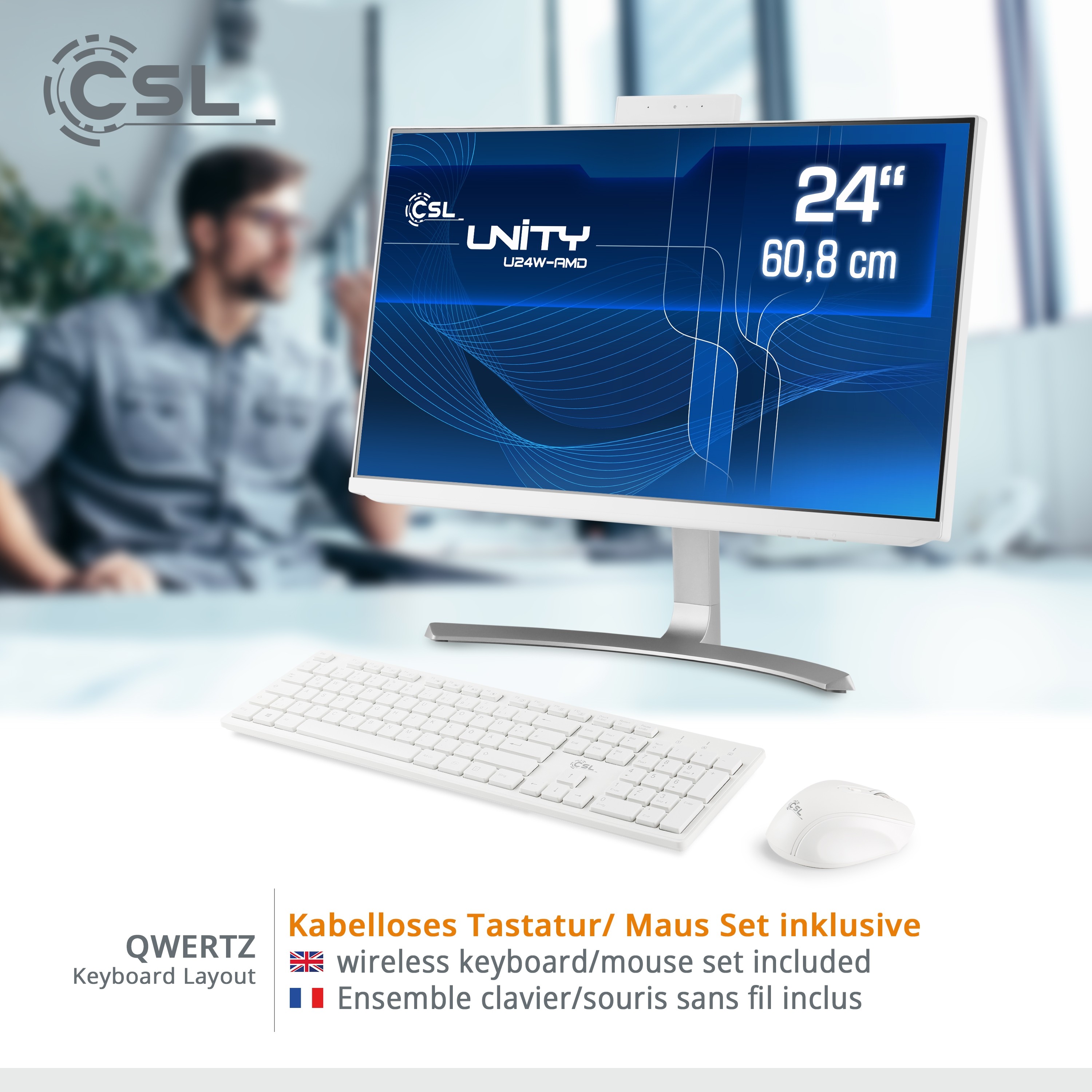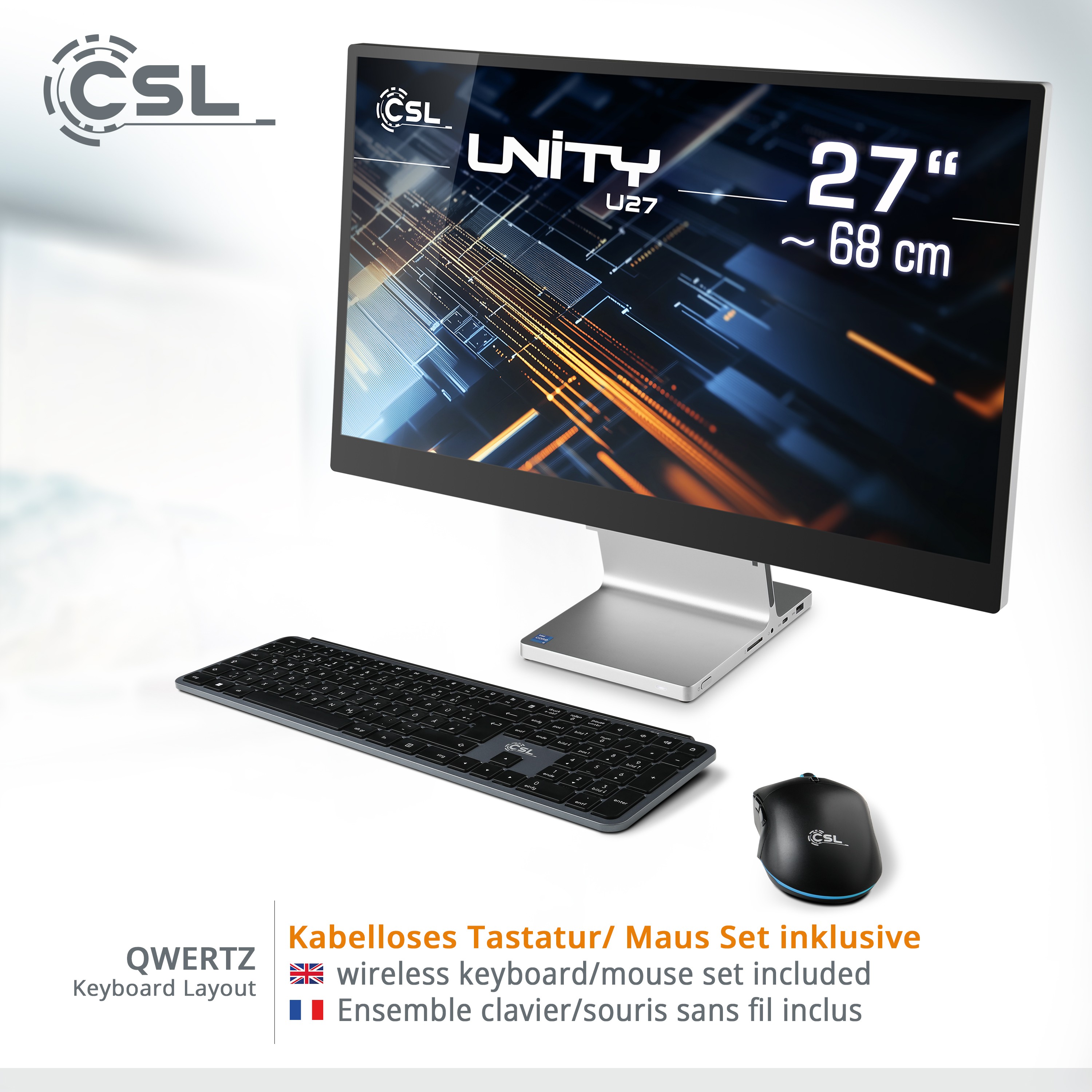 Schlank, leise und voll ausgestattet! Dieser CSL All-in-One PC vereint 27 Zoll Full HD Display und leistungsstarke Hardware in einem eleganten Gehäuse. Mit Intel Celeron N5100 Prozessor (bis 2,8 GHz), 8GB DDR4 RAM und 512GB SSD für flottes Arbeiten. Windows 11 Home bereits vorinstalliert. Integriertes WLAN, Bluetooth und zahlreiche Anschlüsse. Absolut lautlos durch passives Kühlsystem - perfekt für Büro oder Home-Office. Inklusive kabelloser Tastatur und Maus. Nur ein Kabel benötigt - maximal aufgeräumter Arbeitsplatz. Perfekt für Office, Internet, Multimedia und Alltagsanwendungen!